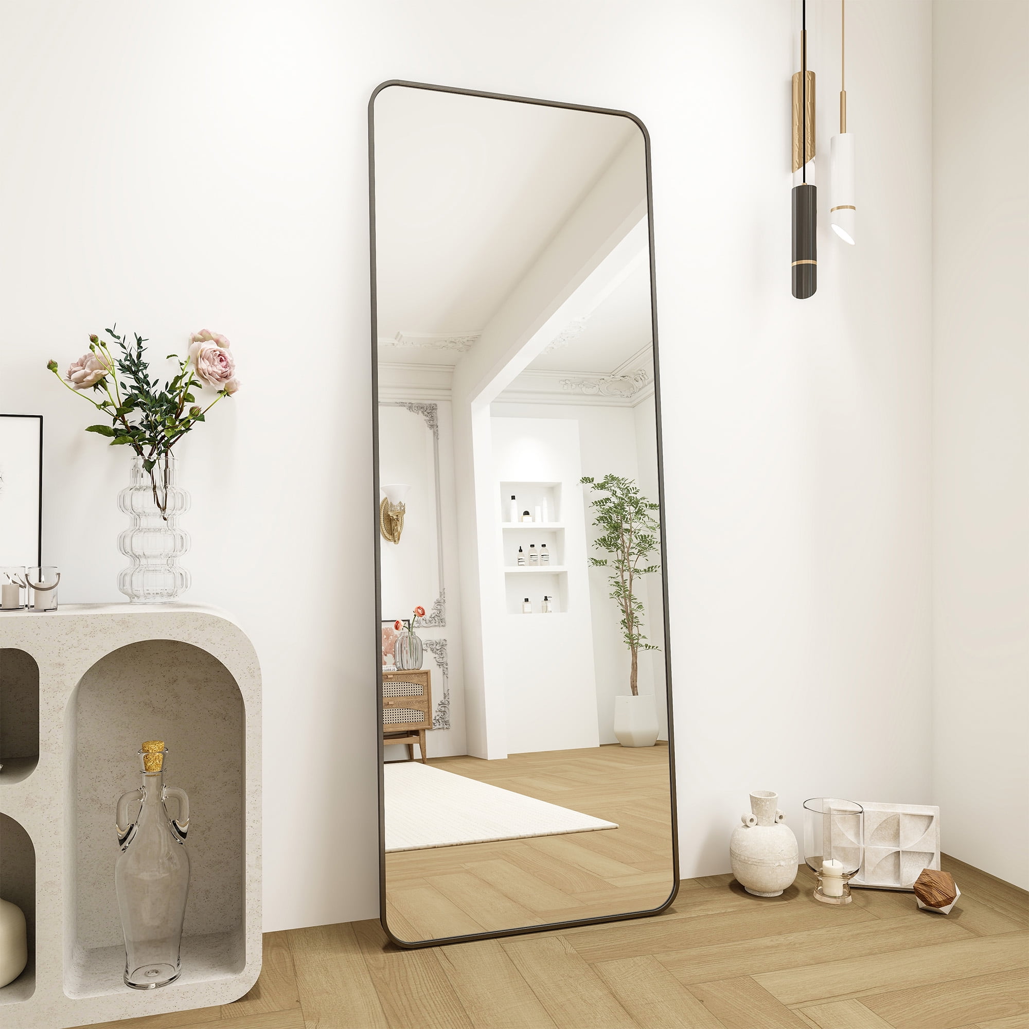 BEAUTYPEAK Arched Full Length Floor Mirror 64″x21.1″ Full Body Standing Mirror,Black