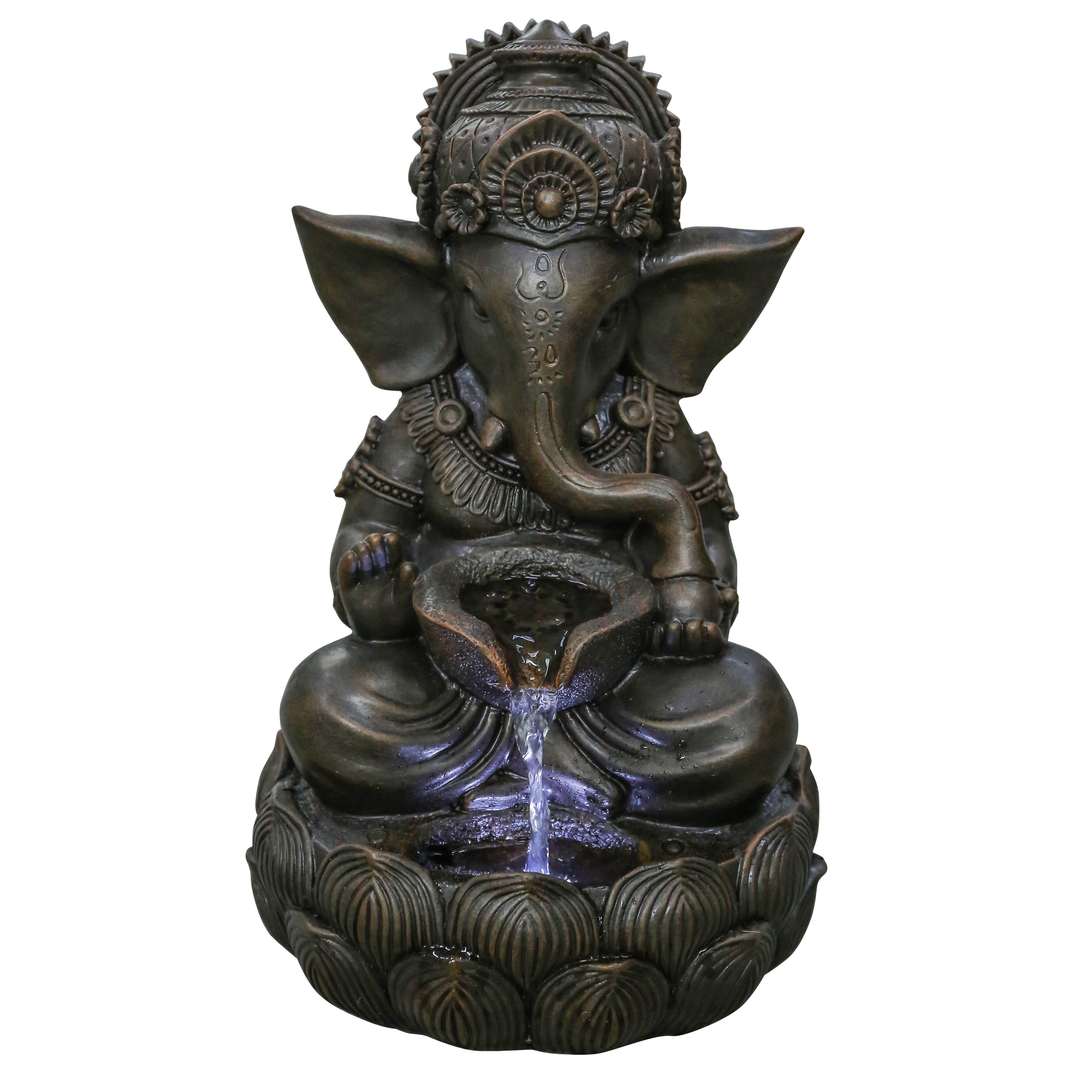 Bed Bath & Beyond 79554-M LED Lights Polyresin Lord Ganesh Sculptural Tabletop Fountain, Brown