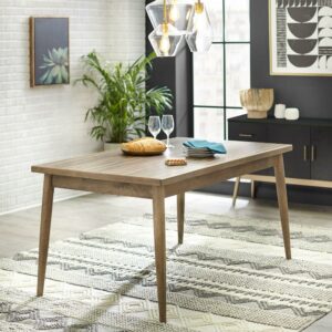 $252.51Enjoy a cozy evening meal with your family and friends at our graceful dining table that provides a luxurious touch to your home. Boasting a solid rubberwood frame with a beautiful natural oak finish, this table is a perfect addition to any dining set. The expansive faux wood tabletop that is supported by shapely concave legs with a tapered finish allows you to dine in a lovely modern ambiance. This gorgeous dining table offers seating for up to four people, providing plenty of space for you and your family as well as ample leftover room for a hearty meal.