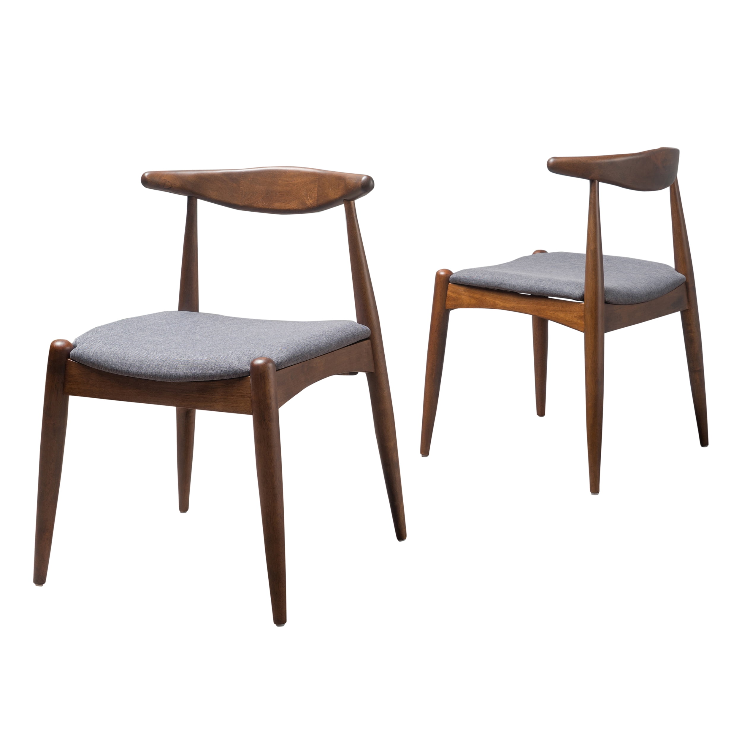 $116.10Give your interior space a new look by adding our classy dining chairs to your dining set for a fresh, mid-century modern style. Designed with minimalistic lines, our chair set lends compact comfort that allows you to make the most out of your space. Featuring an open back frame and slim tapered legs, this chair set emphasizes fresh design and simplistic structure, a perfect addition to any interior space. These dining chairs offer upholstered cushions in a refined charcoal color that is complemented by its smooth rubberwood frame with a deep walnut finish. Accented with iconic flared legs, this dining chair set will elevate your aesthetics to the next level with its sophisticated looks.