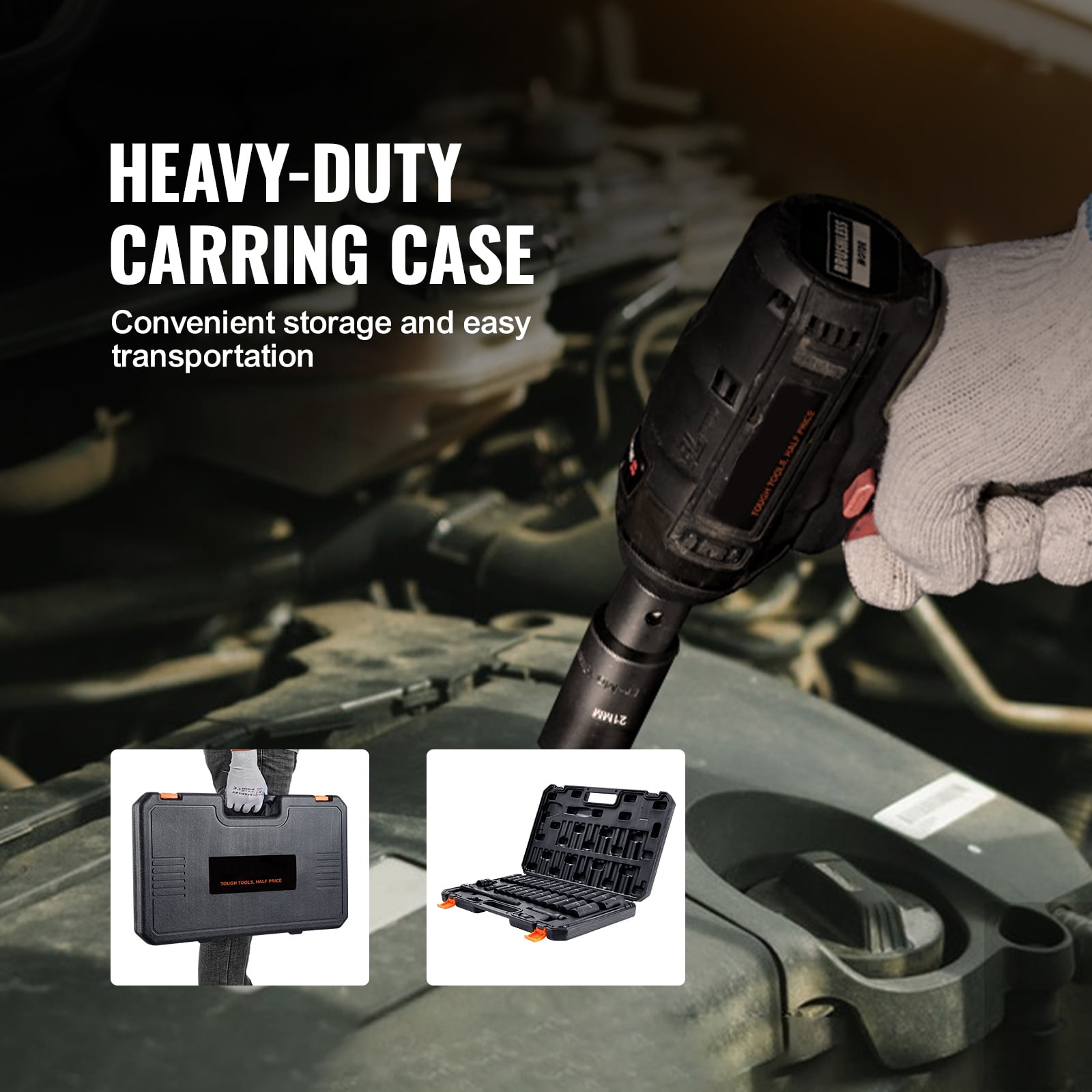 $81.15Product Description 1/2in 34-piece Impact Socket Set Are you looking for a professional and portable set of impact sockets? BENTISM’s 34-piece impact socket set offers a complete range of tools, especially suitable for repairing different brands of automobiles. The high hardness of Cr-Mo alloy steel provides stronger impact resistance and durability, while the heavy-duty and portable toolbox makes work more efficient and convenient. Rugged and Durable The impact socket set, made from Cr-Mo industrial-grade alloy steel, undergoes heat treatment processes such as high-temperature quenching and low-temperature forging, resulting in a hardness level of HRC42-48. Complete Specifications With a pro configuration of 34 pieces, this set can be used with electric wrench, impact wrench, ratchet wrench, rod bender, and other tools for automotive maintenance, equipment assembly, industrial manufacturing, power inspections, and more. Withstand High Torque The hexagonal socket design creates a gap between the nut and the edges during operation, preventing excessive friction and wear. It can withstand greater impact force and effectively remove bolts. Distinct Size Markings Using laser etching and rolling processes, the extra-large size markings on the sockets are clear and easy to identify even under various lighting conditions. The markings are also resistant to wear. Heavy-Duty Carrying Case The split-strengthened case ensures durability and is less prone to breakage compared to traditional one-piece storage. The portable design allows you to easily carry it for work on the go. Black Phosphating Treatment The surface of the socket has a dense phosphating film, which prevents external factors such as oxidation and corrosion from corroding the surface of the sleeve and prolongs its service life. Specifications Item Model Number: SS217834A Impact Sockets Set: 34 Pieces Material: Cr-Mo Alloy Steel Hardness: HRC42-48 Product Size: 20.28 x 12.99 x 2.56 in / 515 x 330 x 65 mm Net Weight: 25.35 lbs / 11.5 kg Package Content 29 x Deep Socket 3 x Extension Bar 1 x Impact Universal Adaptor 1 x Adapter 1 x Toolbox 1 x User Manual