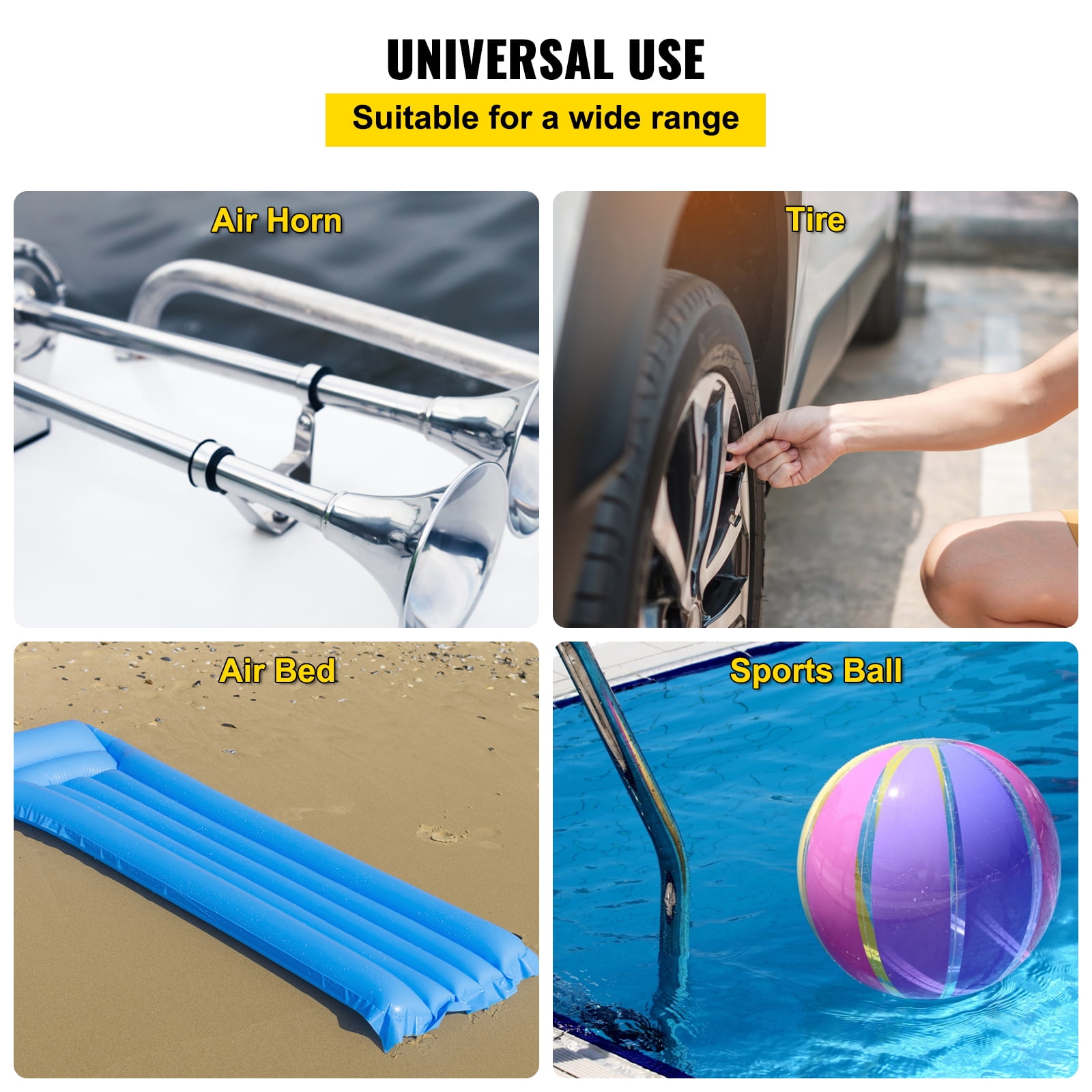 $75.67Product Description 12 Volt Onboard Air Compressor System This onboard air compressor system features the steel air tank and aluminum alloy compressor and can offer reliable performance, suitable for air horns on trucks, cars,and boats, inflation of tires, air beds, sports balls, etc. Sturdy & Durable The steel tank and aluminum alloy compressor are durable and sturdy for your long-lasting use. Specifications Max. Pressure: 150 PSI Power Input: 12 V DC Current: 25 A Power: 180 W Tank Capacity: 6 Liters (1.6 Gallons) Duty Cycle: 25% Flow Rate: 35 L/M Pressure Switch Settings: 90 PSI on, 150 PSI off Weight: 5.5 kg (12.1 lbs) Package Dimensions (L* W* H): Approx. 40* 15* 30 cm (16″* 6″* 12″) Package Content 1 x 12 Volt Air Compressor 1 x Air Tube