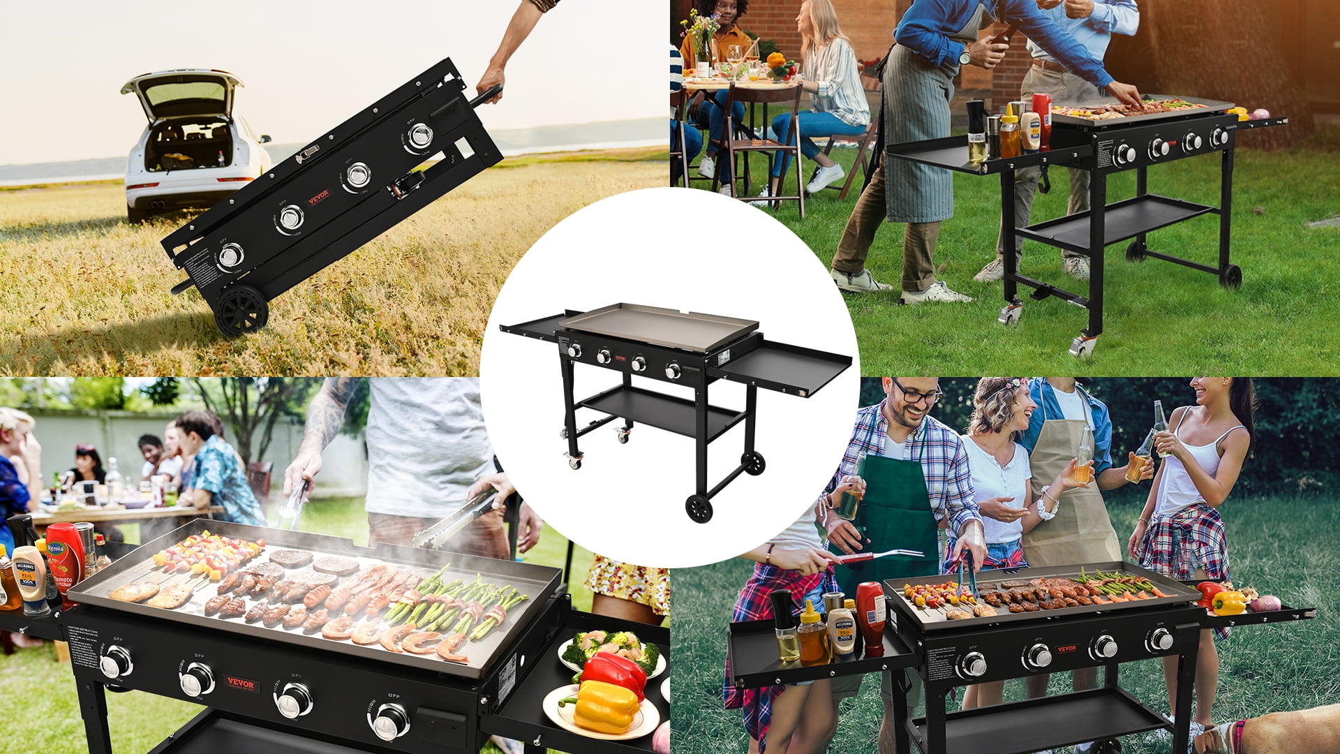 Multifunctional GrillThis commercial gas flat top grill can be used as a flip cover or for storage. It accelerates heating during use, allowing for quick and delicious cooking. Whether it’s camping, picnicking, or outdoor gatherings, it will enhance your outdoor cooking experience.Foldable Trolley DesignUnlike other folding grills, this one can be directly pulled like a trolley when folded, making it incredibly convenient for outdoor adventures. Simply take it out of your luggage and start moving. It features two lockable universal wheels, providing stability during cooking.High-quality Hot-rolled SteelThe baking pan is made of sturdy hot-rolled steel and coated with a layer of vegetable oil to prevent rusting, ensuring healthy and worry-free cooking. It is also UL certified, having undergone authoritative testing and evaluation, guaranteeing your safety and your family’s safety.36″ Large Baking PanThis 36″ baking pan can satisfy a large gathering of food enthusiasts. With the ability to cook multiple dishes at once, it caters to big appetites. It is equipped with 4 burners for individual temperature control, allowing different cooking zones and a diverse culinary experience.Thoughtful Details3 thoughtful details are designed to make your outdoor cooking experience more enjoyable. The built-in grease collection system allows better grease collection and easy cleaning. Pulse ignition ensures quick and convenient cooking. The baking pan’s surface is coated with vegetable oil, preventing rust and allowing for immediate cooking.UL CertifiedIt has undergone rigorous safety testing and evaluation, ensuring your peace of mind. It reduces the risks of fire and gas leaks, protecting yourself and your family.4 H-type BurnersWith a unique design, it ensures even heat distribution and efficient combustion. Whether frying, grilling, stir-frying, or barbecuing, the H-type burners deliver outstanding cooking results.Specifications