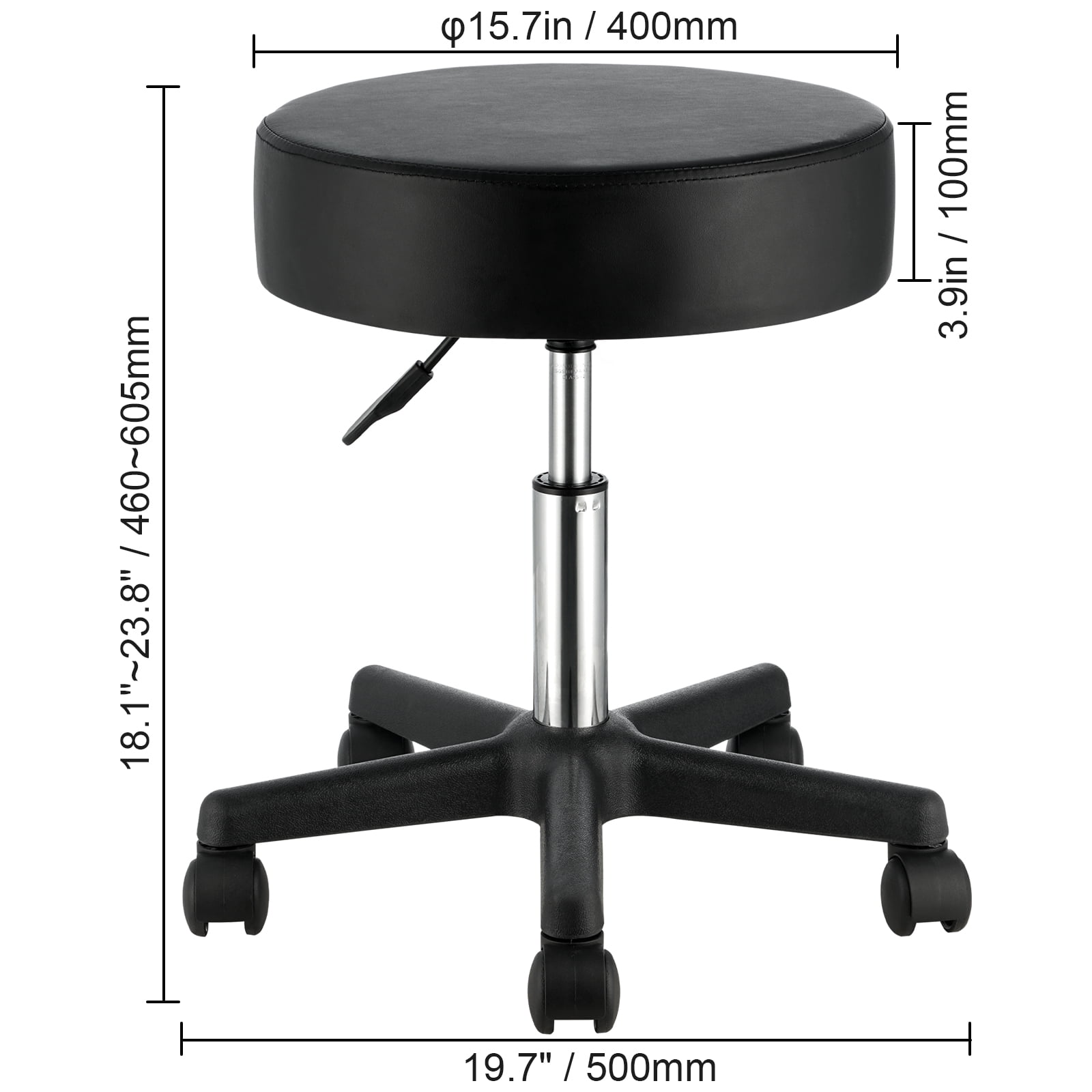$33.45Product Description BENTISM Rolling Round Stool: A Perfect Fusion of Mobility and Comfort Whether you’re working in a professional setting, tackling projects at home, or engaging in creative endeavors, having the right seating solution can make all the difference. The BENTISM round rolling stool with wheels is the perfect choice, offering you both mobility and exceptional comfort. Thickened & Enlarged Cushion Enjoy ultimate comfort with our φ15.7″ seats, featuring a plush sponge filling and a 3.9-inch thickness. The premium PU leather surface is not only waterproof but also wear-resistant and easy to clean. 400lbs Weight Capacity Our swivel stools chair has a weight capacity of 400 pounds, thanks to its sturdy base, which has been widened to 19.7 inches. Additionally, our lift cylinder is SGS certified. You can use it with confidence. Rotatable & Adjustable Discover the perfect seating position with our height-adjustable rolling stool, ranging from 18.1 to 23.8 inches. Our stool’s cushion is designed to rotate freely, enabling you to effortlessly reach different areas. Smooth Movement The rolling stool is equipped with five universal wheels, providing effortless movement and mobility within your workspace. Accessing your tools, equipment, or materials is quick and efficient, saving you time and energy. Various Application The rolling stools with wheels proves to be a versatile option for various spaces, including dental offices, salons, laboratories, and workshops. Elevate your workspace with this exceptional seating solution. Hassle-free Installation Assembly of this swivel stool is hassle-free, thanks to the detailed instructions included, allowing you to set it up quickly and effortlessly, and start enjoying its functionality and convenience in no time. Specifications Product Size: 19.7×19.7×18.1 in/500x500x460 mm Cushion Size: φ15.7 in / 400 mm Item Model Number: PST001 Safe Load-Bearing: 400 lbs / 181 kg Adjustable Height: 18.1-23.8 in ±0.4 in / 460-605 mm ±10mm Cushion Thickness: 3.9 in / 100 mm Cylinder Stroke: 5.5 in / 140 mm Casters Diameter: 2 in / 50 mm Casters Material: Nylon Weight: 8.82 lbs / 4.0 kg Package Content 1 x Cushion 1 x Nylon Base 1 x Hydraulic Cylinder 5 x Casters 1 x Manual