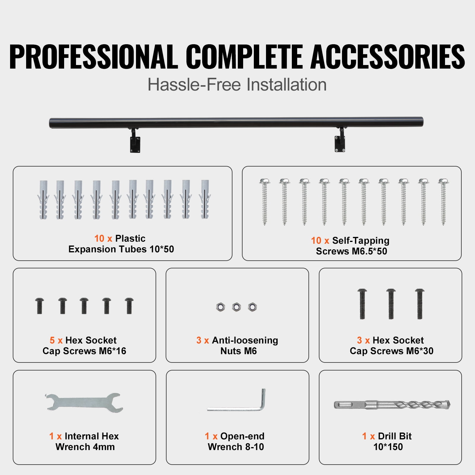 $56.75Product Description BENTISM Stair Handrail, Safeguarding Your Family’s Well-Being We deeply understand that safety is of utmost importance in areas like stairs, hallways, or balconies for you and your family. Therefore, we ensure the use of sturdy installation components to enhance stability and avoid any unforeseen accidents. 440 lbs Load Capacity The aluminum alloy handrail boasts outstanding load-bearing capacity of up to 440 lbs, providing you with a secure and supportive grip without bending, and the screw fixation prevents slipping. Rich Accessories The railing kit is equipped with specialized accessories, the installation process is made easy and hassle-free with just a few simple steps. Universal Applicability With a cross-section size of φ50×2, we have designed the handrail to cater to different age groups’ gripping characteristics, offering a comfortable and ergonomic experience. Suitable For Various Settings The handrail’s simple and versatile black appearance, along with its powder-coated surface, allows it to blend seamlessly with various interior styles. 2 Combination Options We offer both single-segment and multiple-segment combinations, making it easy to match different sizes of handrails even at indoor staircase corners. Sturdy Installation Structure With plastic expansion pipes, the handrail can be firmly embedded into the interior of the wall, along with anti-loose nuts, ensuring a longer lifespan and preventing slipping or shaking. Specifications Item Model Number: H8170-4 Item Length: 4 ft / 1220 mm Max. Load Capacity: 440 lbs / 199.6 kg Distance Between Columns: 35.4″ / 900 mm Main Material: Aluminum Alloy Net Weight: 5 lbs / 2.3 kg Item Dimensions: 48 x 2.76 x 7″ / 1220 x 70 x 180 mm Package Content 10 x Plastic Expansion Tubes 10*50 10 x Self-Tapping Screws M6.5*50 3 x Hex Socket Cap Screws M6*30 3 x Anti-loosening Nuts M6 1 x Open-end Wrench 8-10 1 x Internal Hex Wrench 4 mm 1 x Drill Bit 10*150 1 x User Manual