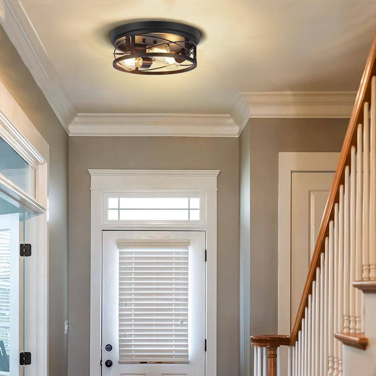 $55.03【Black Cage Design Ceiling Light 】This UL Certified farmhouse flush mount ceiling light (Ceiling Canopy Diameter: 11.8 inch, Lamp Height: 3.73 inch) features a unique matte black finish and open cage-style frame, gives enough illumination to light up the whole room and add a vintage industrial chic touch to your house.