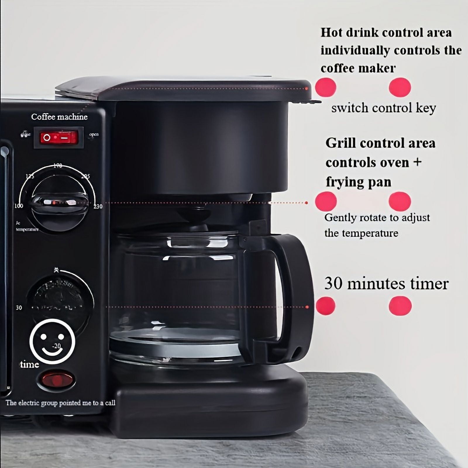 3-in-1 Breakfast Station – Coffee Maker, Non-Stick Griddle, and Toaster Electric Oven – Versatile Breakfast Maker Machine with Timer- Black