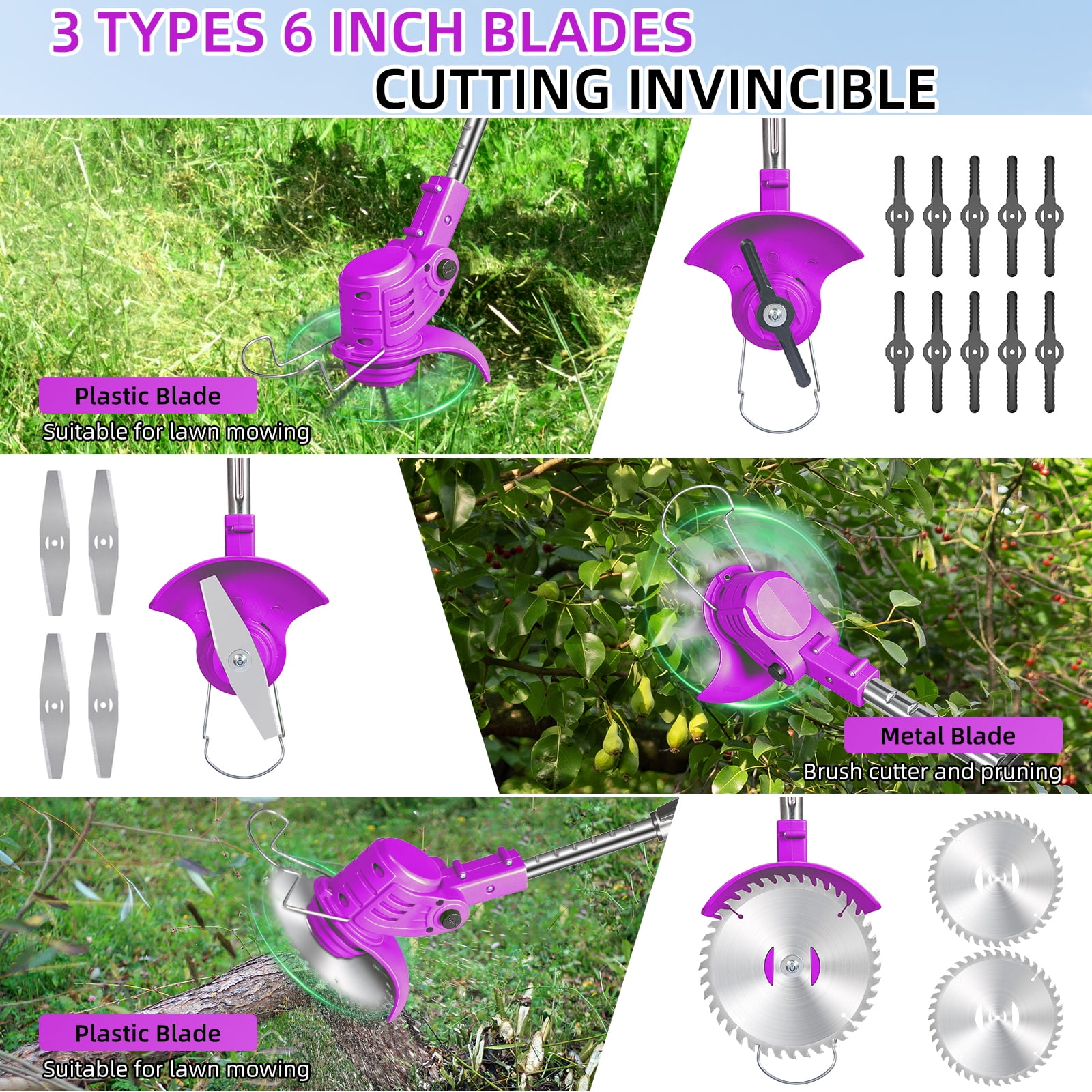 $34.38Default Voltage: 21V Rated idle speed: 11500 rpm Max cutting diameter: 260mm Package Weight: 8.8ib Machine weight: 4.4ib Package Size: 38x8x4in Battery Capacity: 21V 4.0A x 2 String Trimmer: The no-load current is 5.0A, the no-load time is about 40 minutes, and the actual use is about 20-30 minutes Metal Blade: The no-load current is 1.7A, the no-load time is about 140 minutes, and the actual use is about 90-120 minutes circular saw blade: The no-load current is 3.3A, the no-load time is about 72 minutes, and the actual use is about 50-60 minutes Two 4.0Ah Battery meet the needs of daily work and can be charged 500 times without damaging the battery. Features: 1. Clearly know the remaining battery power 2. Adjustable Shaft & Handle 3. Accommodates users of all heights with its telescoping shaft. And the adjustable front D-grip lets you find a position that’s comfortable for you. 4. The motor head can be rotated 5. The rotatable motor head can be adjusted to meet your different scenes 6. Ensure safety during use, solve auto power off to avoid potential safety hazards 7. Rotate the motor head 90 degrees to the left 8. The motor head can be rotated 90 degrees to the left and switched to the lawn edger in seconds 9. 4 gears adjustable & safety lock 10. With the help of the tank sliding wheel, it can not only be operated with one hand but also the height of the lawn can be determined. 5 gears can be set! 11. More convenient storage of Grass Cutting line, providing more efficient work during trimming