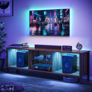 Bestier 70 Inch TV Stand for TVs up to 80″, Entertainment Center with RGB LED Lights & Open Storage, Walnut