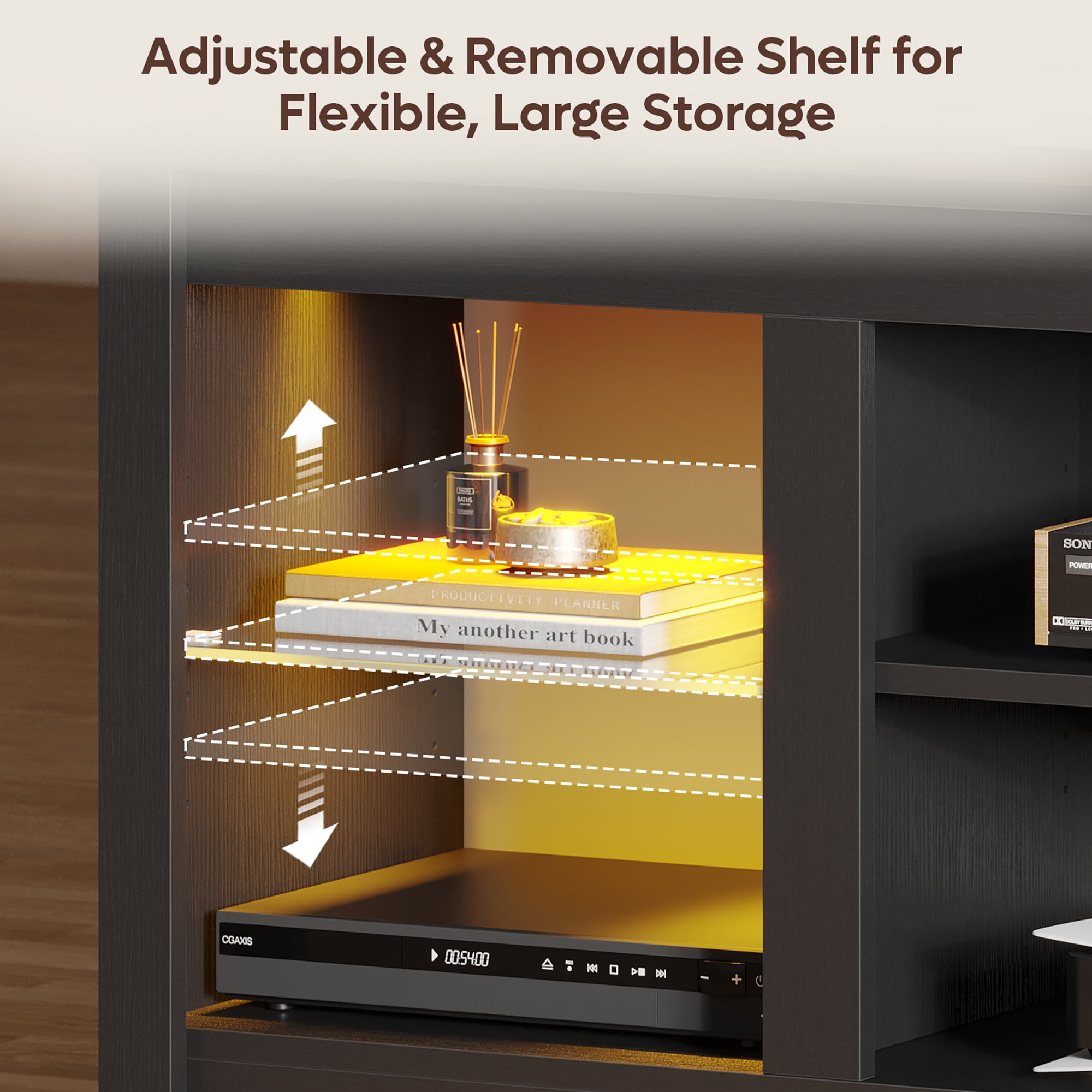 $146.19Original price was: $146.19.$91.13Current price is: $91.13.Discover the Bestier Modern TV Stand, the perfect entertainment center for TVs up to 70 inches. Measuring 63″(L) x 15.8″(W) x 23.5″(H), it features six adjustable and removable shelves, ideal for storing your PS5, Xbox, DVDs, and other gaming consoles. The built-in LED lights add a stylish touch and improve visibility. Made from durable P2 particle board, this stand ensures long-lasting use. Its sleek design complements any living room decor. Easy to assemble with the included instructions and tools, it offers both style and practicality. Upgrade your living room entertainment setup with the Bestier TV Stand, perfect for those seeking a functional and elegant solution.