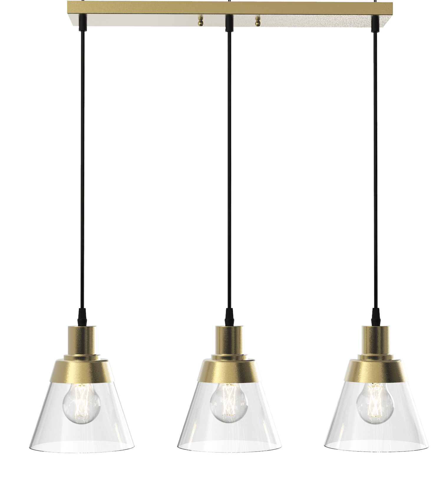 Better Homes & Gardens 25″ Architectural 3-Light Island Pendant Light, Gold Finish Clear Glass Shades
