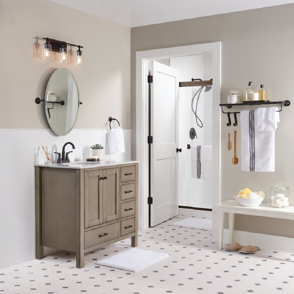 Better Homes & Gardens 22″ Modern 3-Light Bronze Vanity Light, Glass Shades, Bulbs Not Included