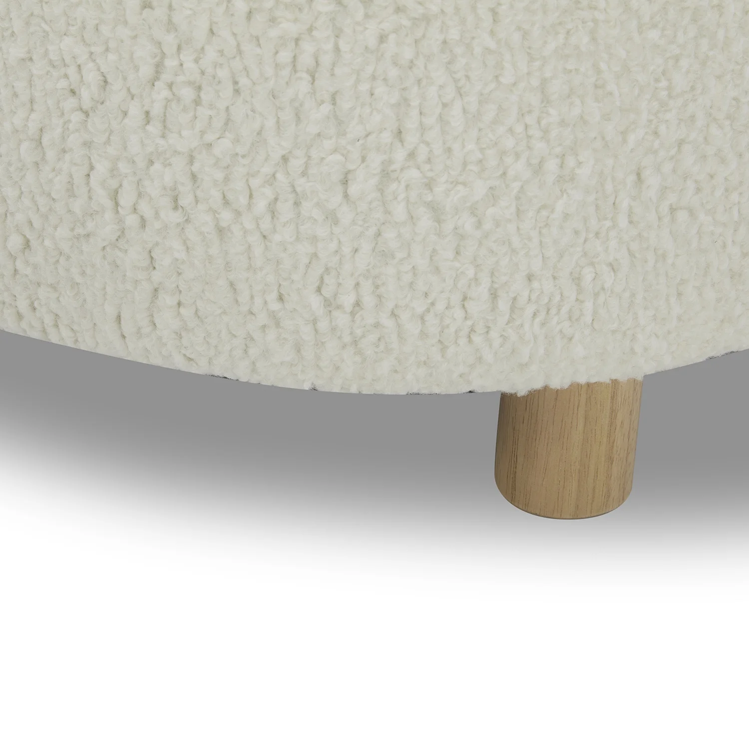 $80.84Chic, minimalist and modern, the Faux Sherpa Cream Ottoman in a stylish round shape is covered in a plush piled fabric for a soft, fluffy and comforting texture. Slim tapered solid wood legs in a warm honey finish and matching stitching on the upholstery and reversible cushion create a refined look with designer appeal. The ottoman offers trouble-free, enduring quality with solid hardwood construction and reinforced joints, along with premium high-density foam and a heavy no-sag suspension construction system. Get started relaxing with no delay: assembly is easy and fast by simply attaching the legs to the base of the modern ottoman.