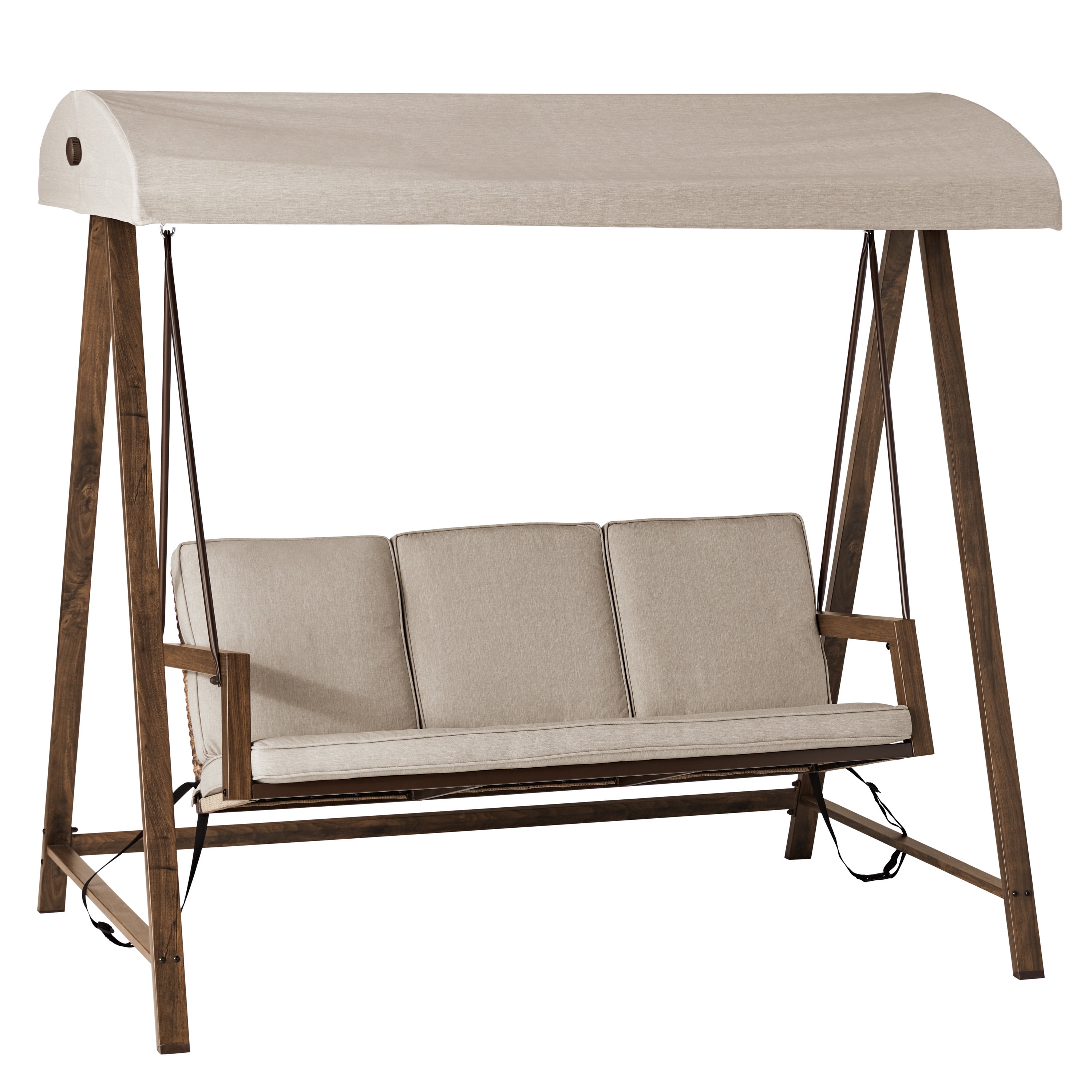 Better Homes & Gardens Willow Springs 3-Seat Steel Canopy Porch Swing with Cushions, Brown/Gray