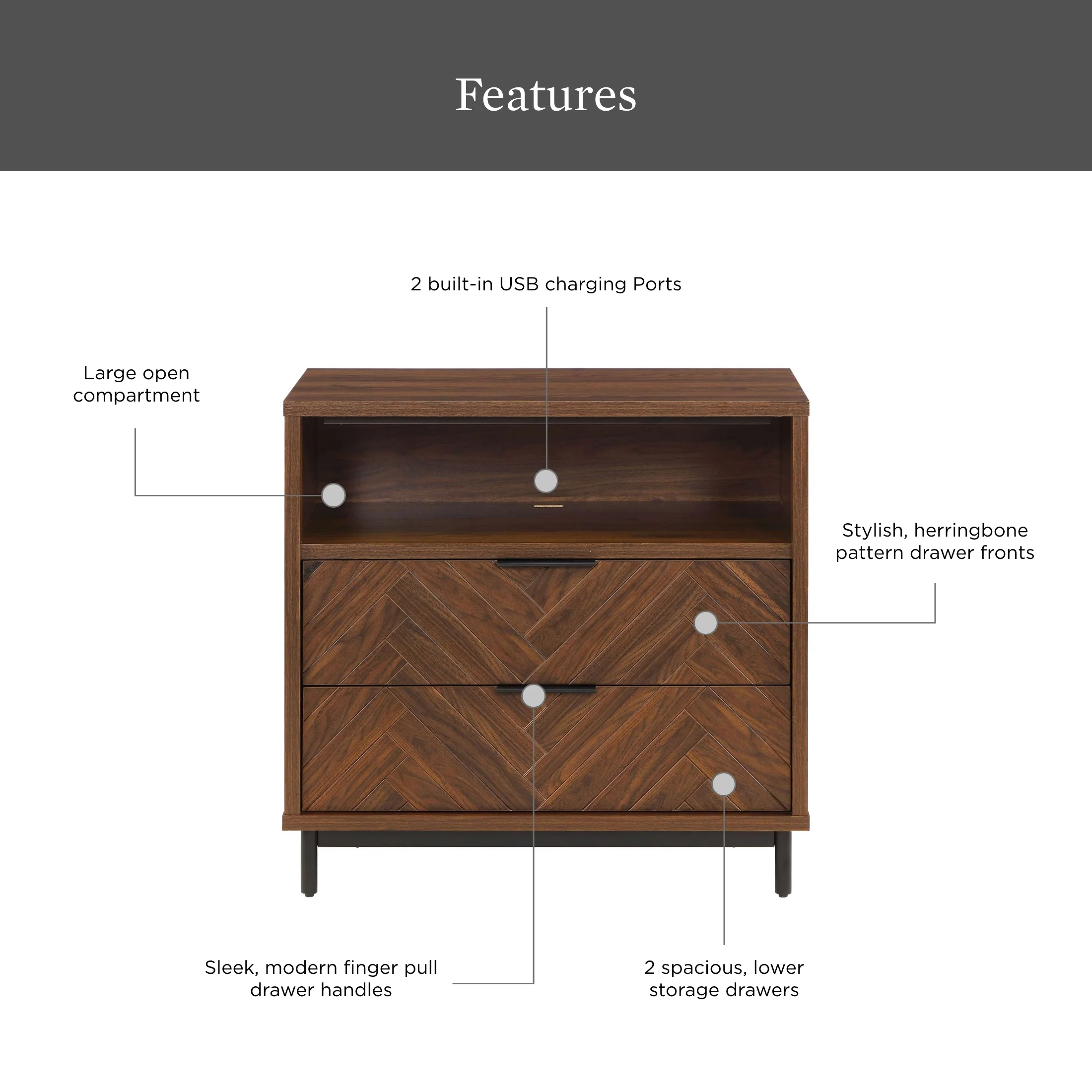 Better Homes & Gardens Wyatt Geo 2-Drawer Nightstand with USB, Walnut Finish