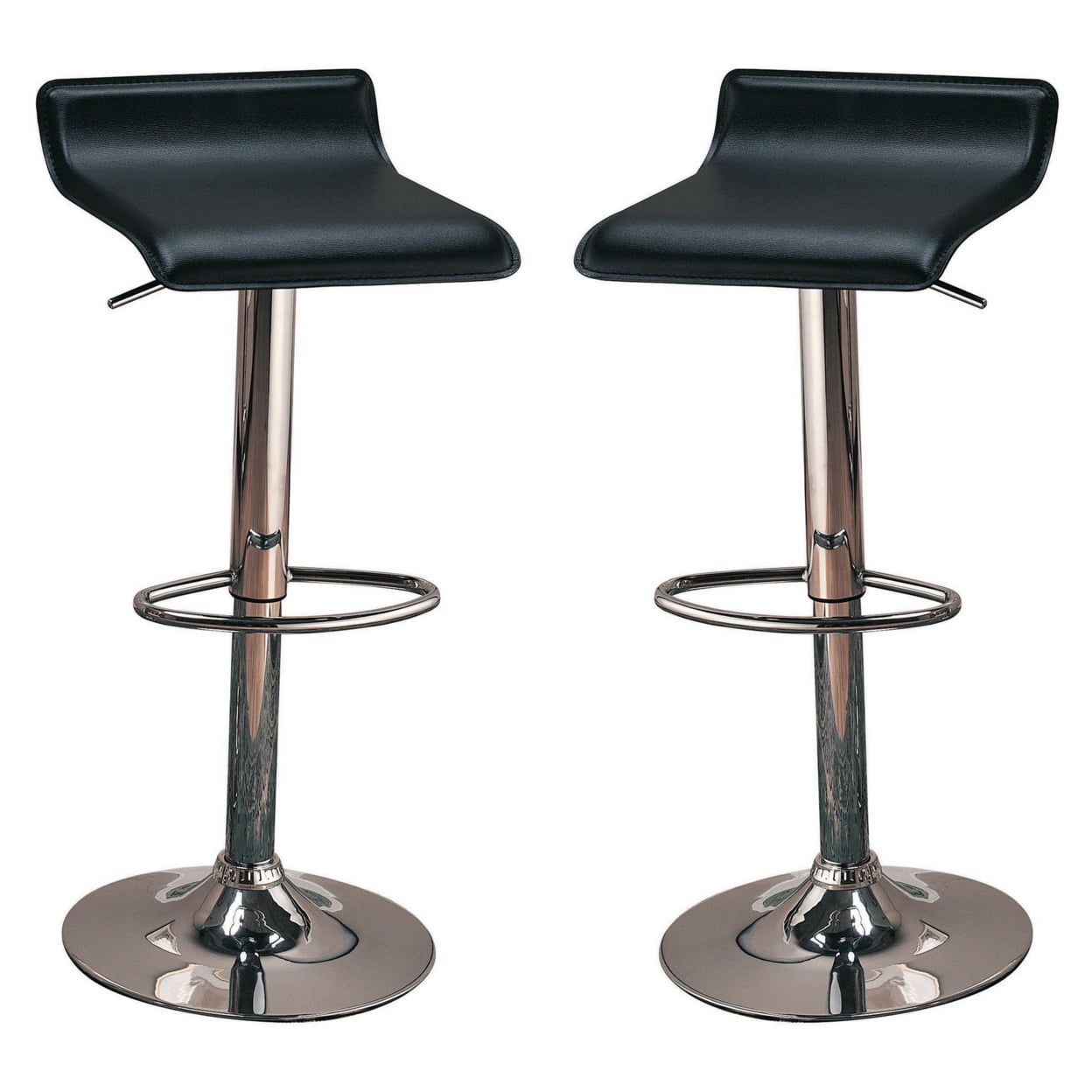 $116.79An adjustable barstool with a modern silhouette is a beautiful upgrade to any kitchen or lounge space. Featuring black upholstery, the stool features a curved seat that offers just the barest hint of a back. The seat is height adjustable to accommodate a range of table and counter heights. A chrome finish lends gleaming appeal to a pedestal base. A built-in footrest provides a final touch of comfort and support. Features: Includes: Two (2) bar stools Metal finish: Chrome Upholstery: Black Materials: Metal, Poly, Faux Leather Materials content: 85% polyester, 15% polyurethane Cleaning code: S Type of swivel plate: 360 degree Specifications: Product Dimensions: 27.25″-32.75″H x 15″W x 14.5″D Product Weight: 24.7 lbs Seat Dimensions: 24″-29.50″H x 15.5″W x 13.5″D Adjustability: from 27.25″ – 32.75″H Assembly Required: Yes Warranty: One (1) year limited manufacturer warranty