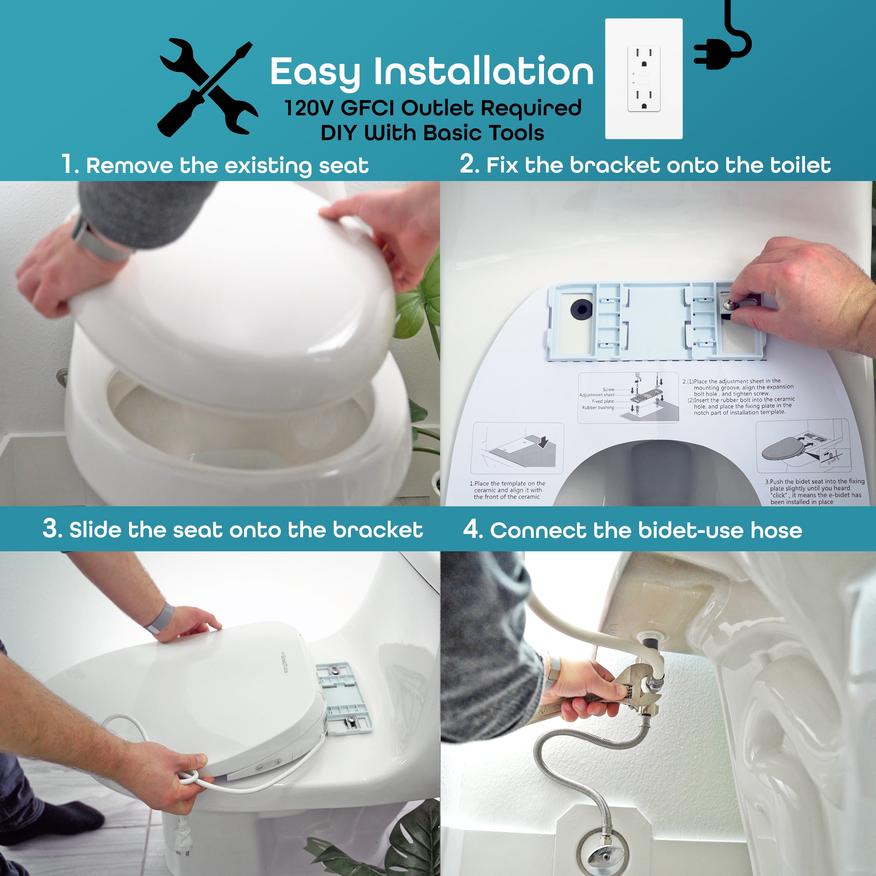 $283.79Use less toilet paper and be more hygienic! Here’s a more hygienic and eco-friendly alternative for your daily comfort and cleanliness. Meet the BidetMate smart heated toilet seat with electric bidet that redefines the bathroom experience. This is your sign to upgrade to a cleaner, more sustainable toilet seat. Our toilet bidet attachment offers a modern design and advanced technology for the entire family. With customizable aerated, pulse, feminine, power wash, massage, and child wash functions, this toilet seat with bidet provides a tailored cleaning experience for everyone. Easily adjust the settings using its side control panel to suit your needs. Elevate your bathroom routine with the BidetMate 1000 Series Toilet Seat with Bidet! Crafted from premium materials, our bidet with dryer boasts a stainless steel self-cleaning nozzle and a soft-closing seat. The heated bidet function ensures warmth and comfort, while the adjustable settings for water and dryer allow for a personalized touch. This Japanese toilet innovation combines luxury and functionality in one sleek package. Experience the numerous benefits of this toilet seat with warm water bidet. Not only does it provide a gentle, refreshing clean, but it also reduces the need for toilet paper for a more sustainable lifestyle. Perfect for those with sensitive skin, this heated toilet seat may help ease discomfort from chronic UTIs, fissures, hemorrhoids, and IBS with a soothing cleanse that toilet paper simply can’t match. This toilet bidet is a game-changer for everyone, from the elderly seeking ease of use to parents wanting a hygienic option for their children. Our bidets are ideal for anyone looking to upgrade their bathroom with modern conveniences and prioritize personal hygiene. Ot’s more than just a toilet bidet attachment; it’s an investment in your well-being. Add the BidetMate 1000 Series Toilet Seat with Bidet to your cart today!