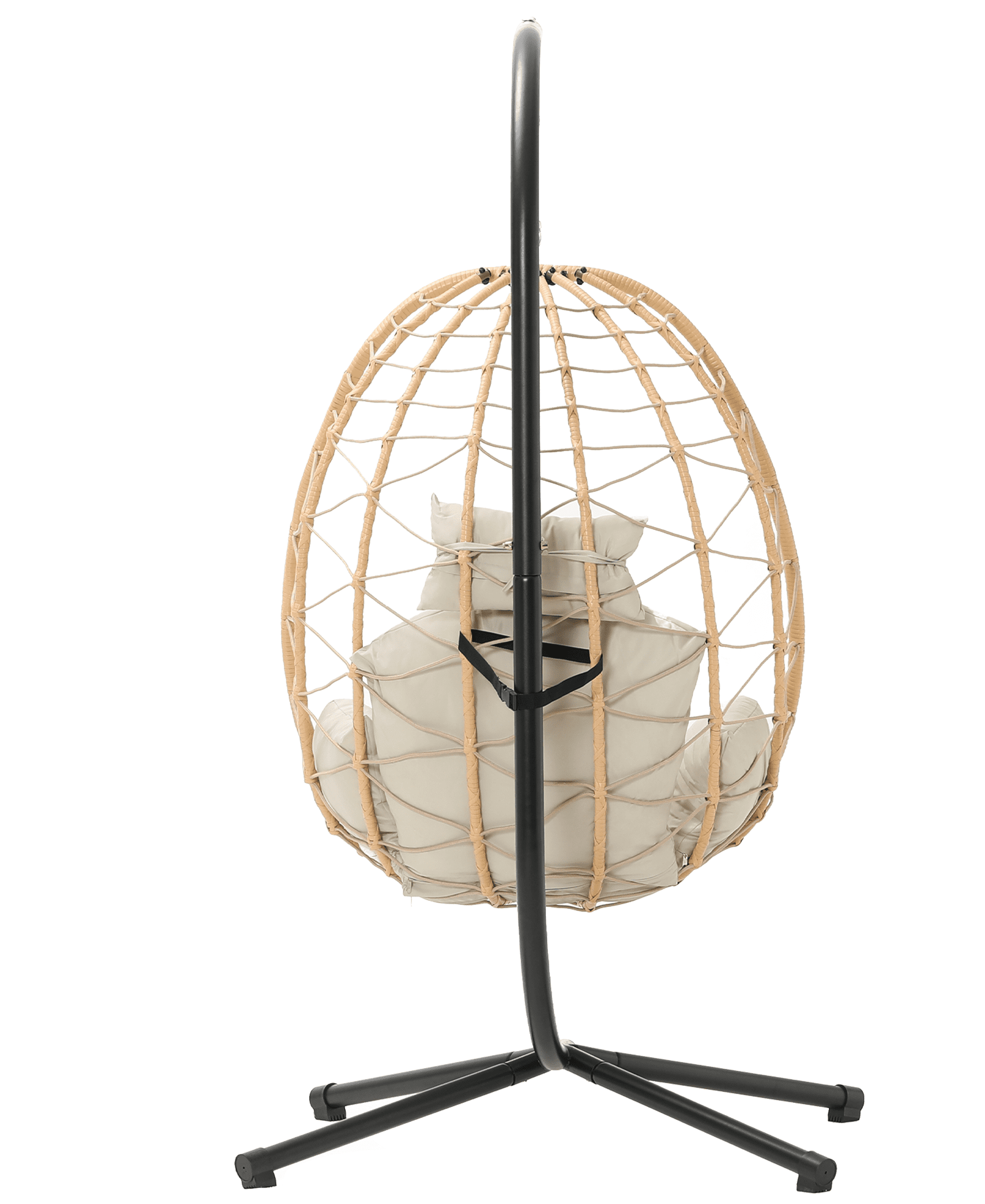 Bifanuo Indoor/Outdoor Wicker Swing Egg Chair Hammock Hanging Chair Nest Basket with Stand, UV Resistant Removable & Washable Cushions,350LB Capacity for Bedroom, Balcony, Garden (Yellow and Beige)