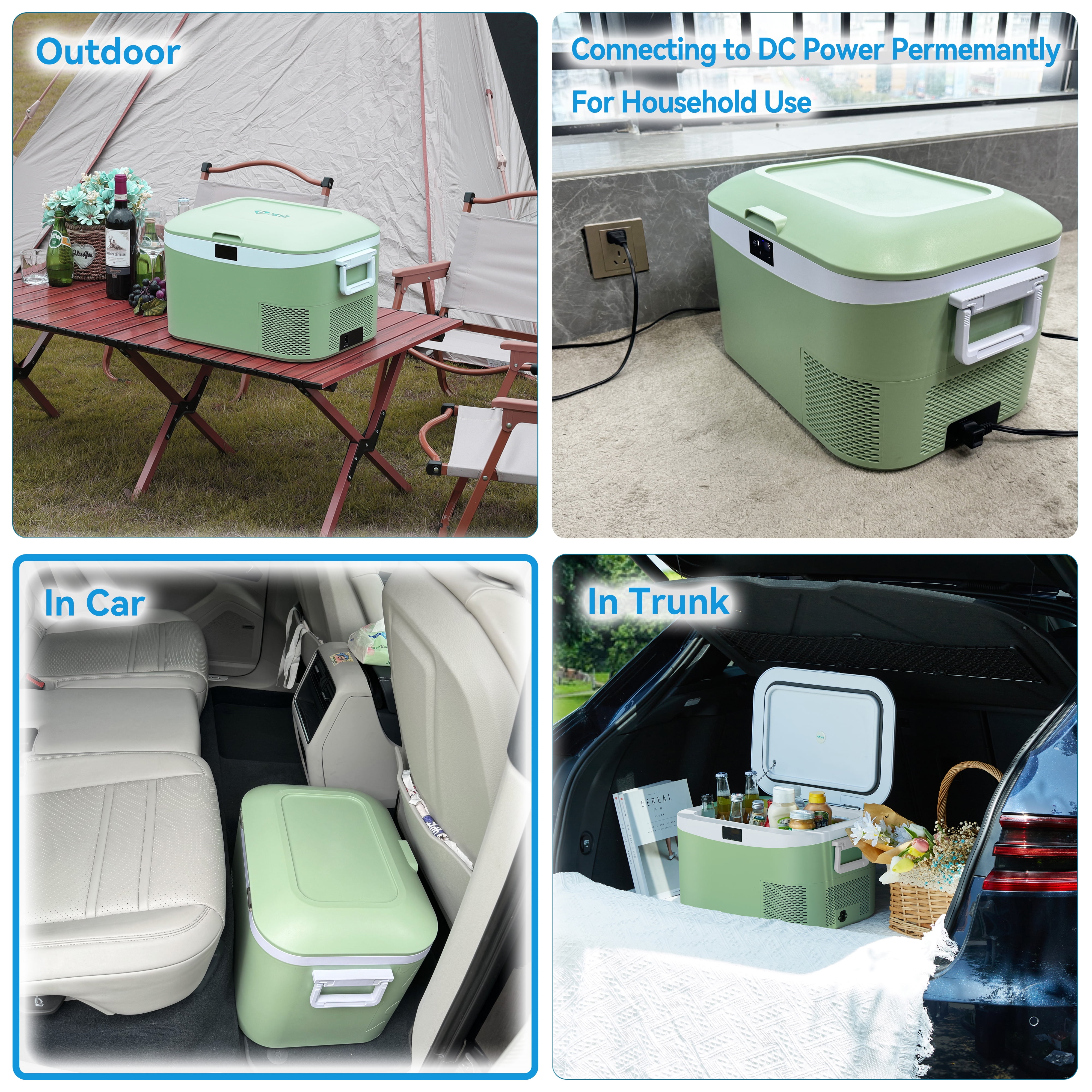 $116.95BINGI portable refrigerator, powered by a powerful copper-wired compressor,can cool down quickly; After power disconnection, the foaming agent and wall insulation can keep the refrigerator cool for several hours; By adjusting between -18℃ (-0.4℉) and +15℃ (59℉) on Touch Screen; it can be a portable refrigerator or a portable freezer, suitable for holding not only fruit and drinks, but also ice cream, meat and other items keep under zero degree; Smart,lightweight but strong plastic body makes the 12 volt compressor fridge easy to move, also can be put inside car or in trunk easily; Equipped with an AC adapter and a DC cable, the camping fridge can be supplied with 100V to 240V AC power or 12/24V DC power; the average operating power is only 40W, which costs less than 1 kWh per day. When car battery is low, the 12V refrigerator automatically stops compressor to protect Q&A for Daily Use: Q: It seems does not work when I push On/Off button A: On/Off will work only after pushing for 5 seconds, This is designed to avoid unintentional touch Q: Why the compressor stop and restart automatically? A: The control Logic of refrigeration: Compressor will start to work 3 min after switch on fridge manually; then it will stop once internal temperature reaches selected and will restart once internal temperature rises 3 degree higher than temperature selected. this is the working cycle fridge repeats permanently after power connection For exmaple:should you set 5℃/41℉ degree, compressor will stop working when internal temperature reaches 5℃/41℉; then cabinet temperature will rise slowly, once it reach 8℃/46.4℉, compressor will start working again. should you want to keep something needs 2-8℃(35.6-46.4℉), please consider to select 4-5℃(39.2-41℉) Q: why temperature on led always changes? A: First, the temperature displaying on screen is actual temperature inside cabinet, not temperature selected. some big fridge for household, just show temperature selected, that why it looks no change all time. Second, when Fridge compressor work/stop in cycle, cabinet temperature should change accordingly, which is normal. Q: How do I know fridge received is qualified? What should we do if other problems? A: Please refer to service guide mentioned on door, user’s manual or contact us through , we will reply within 24 hours