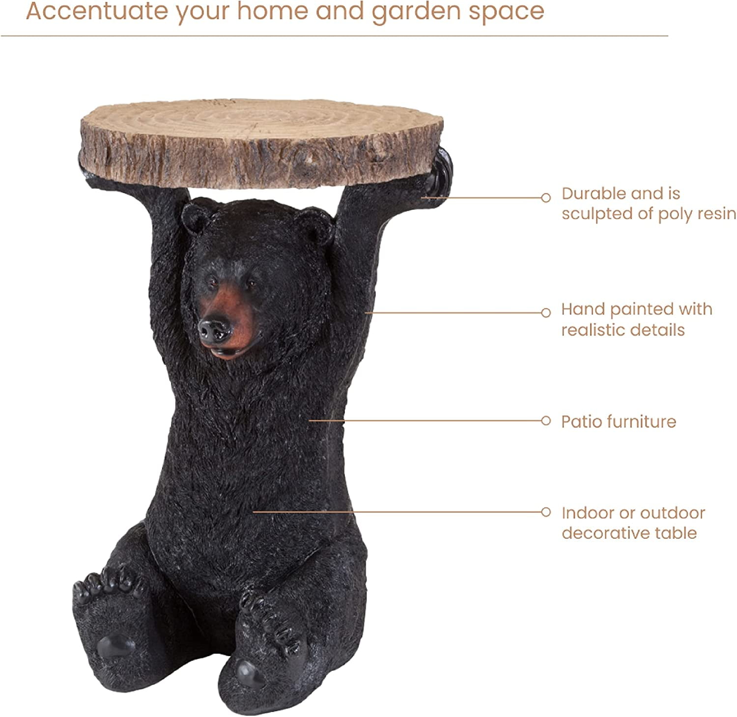Bits And Pieces Realistic Bear Sculpture Polyresin and Hand Painted Round End Table, Natural