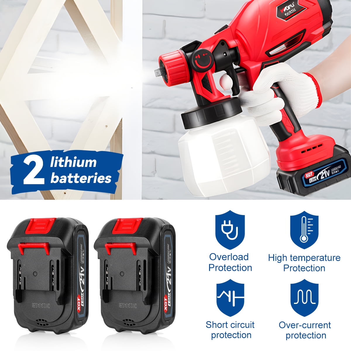 BIUBLE 21V Cordless Paint Sprayer with 2 Batteries for Home, Garden & DIY Projects and Artwork