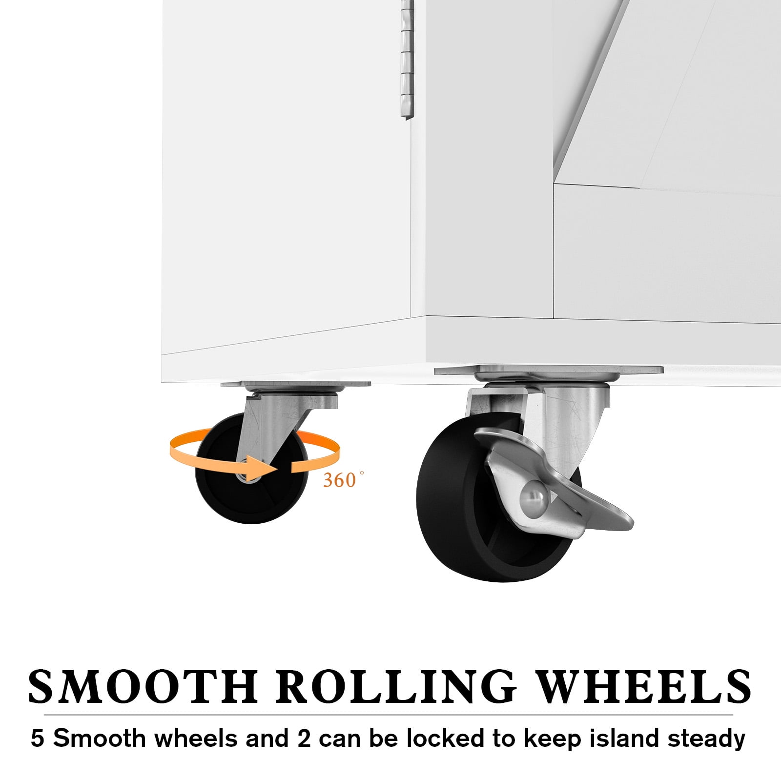 “HLR 51.7″” W Rolling Kitchen Island, Adjustable Shelves, Breakfast Bar with Storage, White”