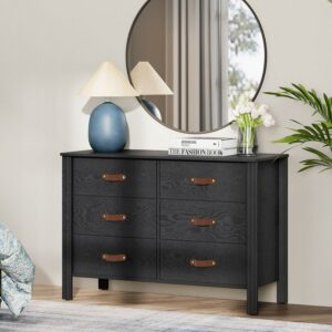 Black Dresser for Bedroom, Wood Kids Dresser with 6 Drawers, Farmhouse Chest of Drawers for Living Room, Hallway