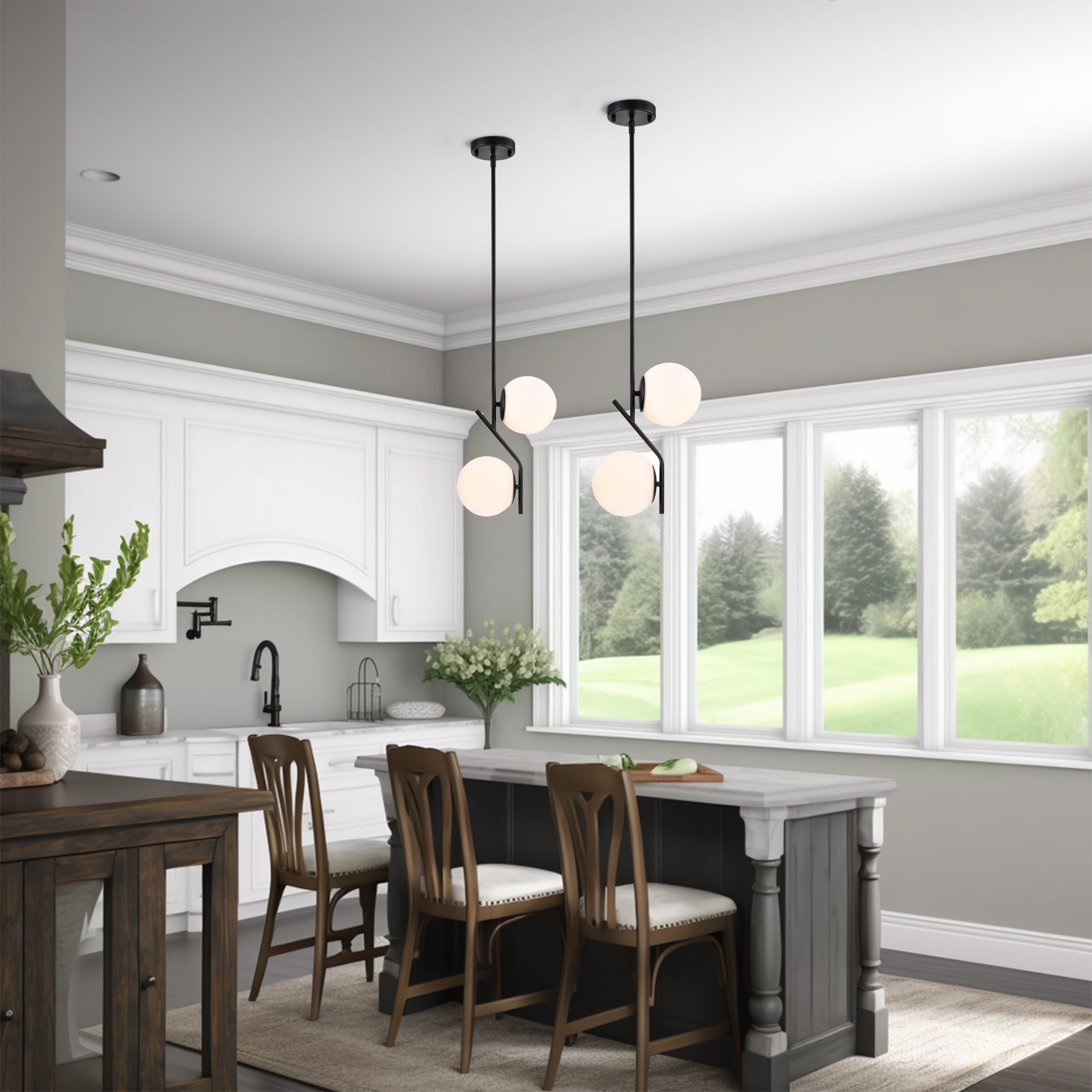 Black Pendant Light Fixture 2-Light Mid Century Modern Black Chandelier Globe Pendant Light Fixtures Glass Pendant Lighting for Kitchen