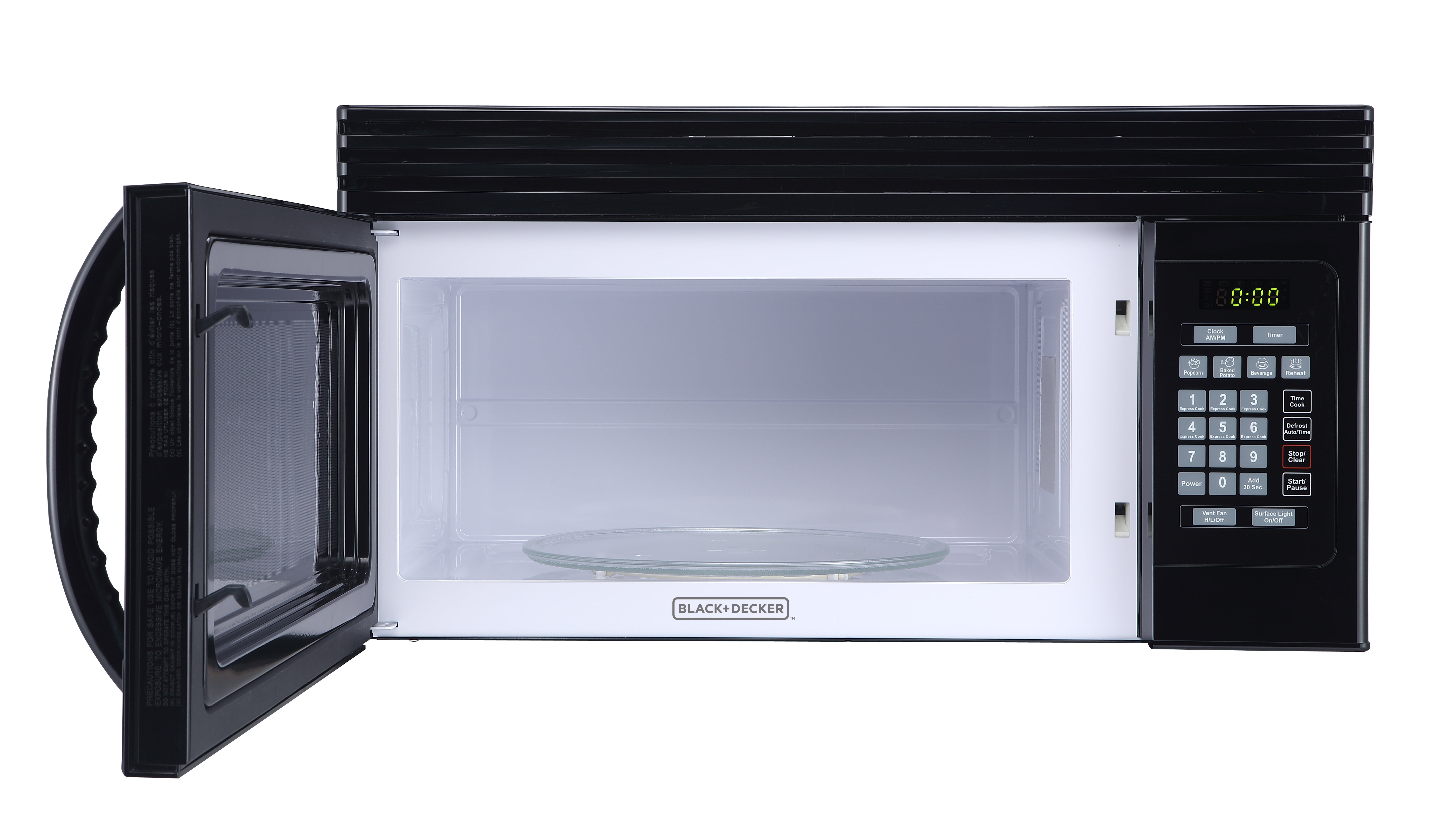 Black+Decker EM044KJN 1.6-Cu. Ft. Over-the-Range Microwave with Top Mount Air Recirculation Vent, Black