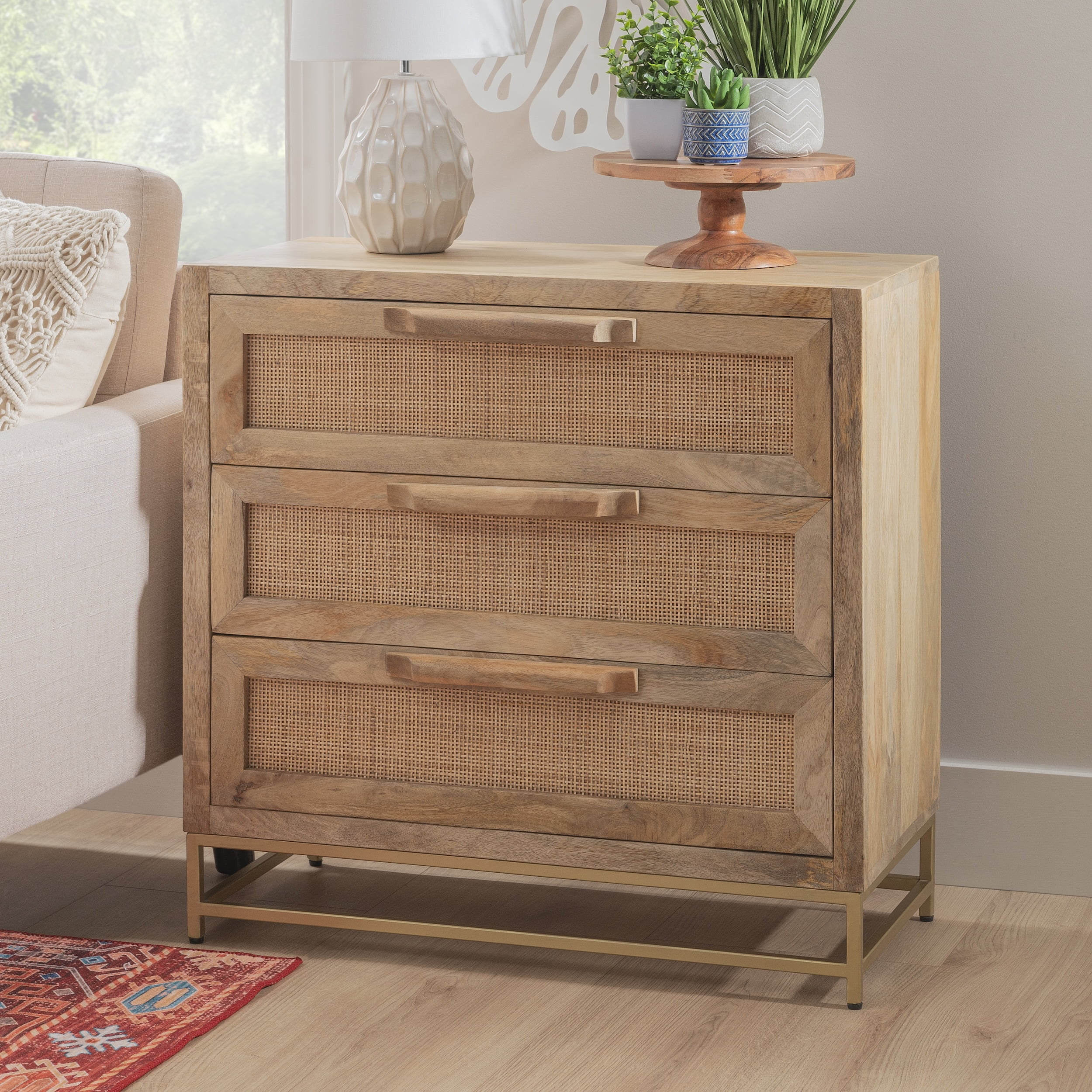 Blair 3-Drawer Rattan Cabinet, Natural and Gold