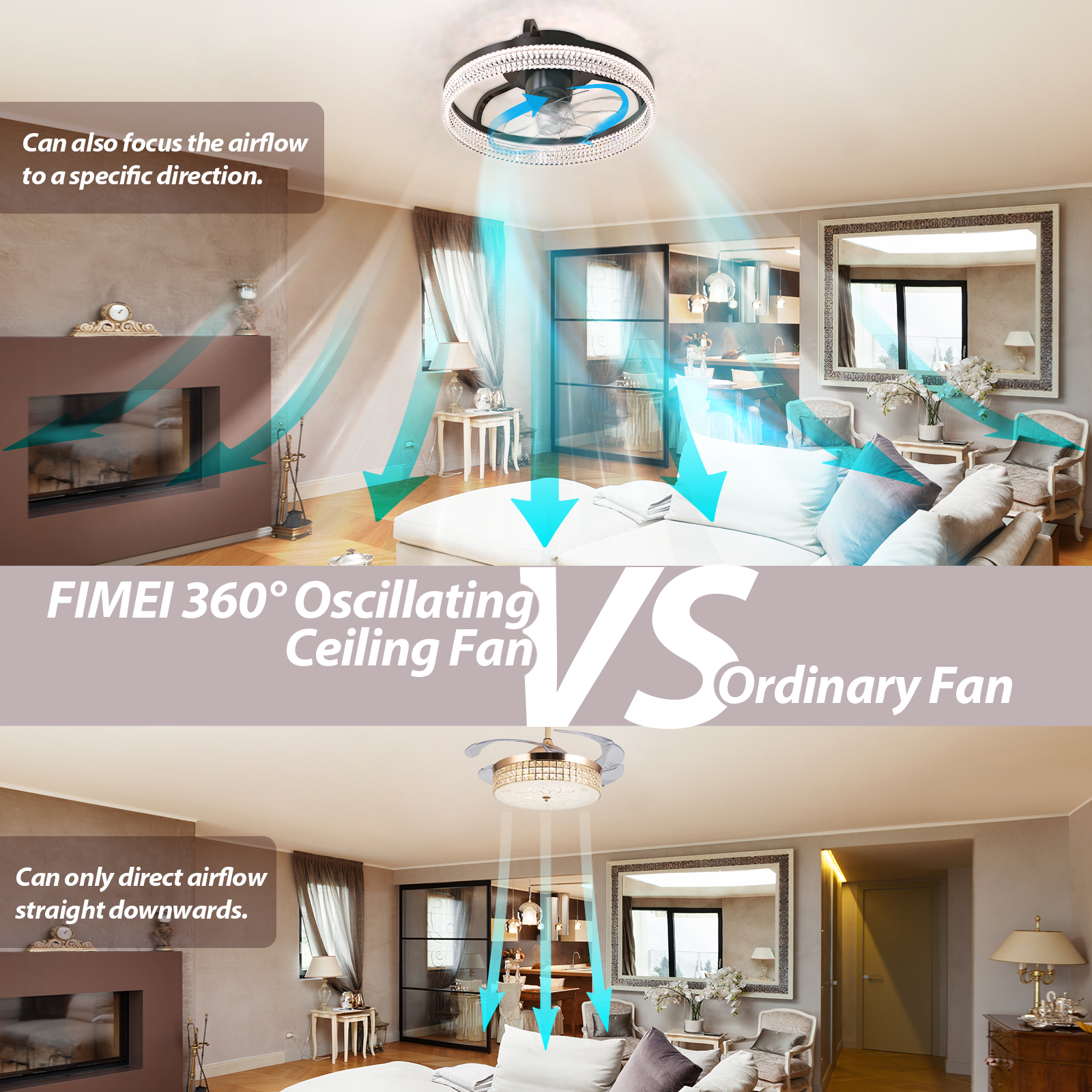 360° Oscillating Ceiling Fan with Light FIMEI 19.7″ Dimmable Ceiling Fan Light with Remote, 6 Speeds