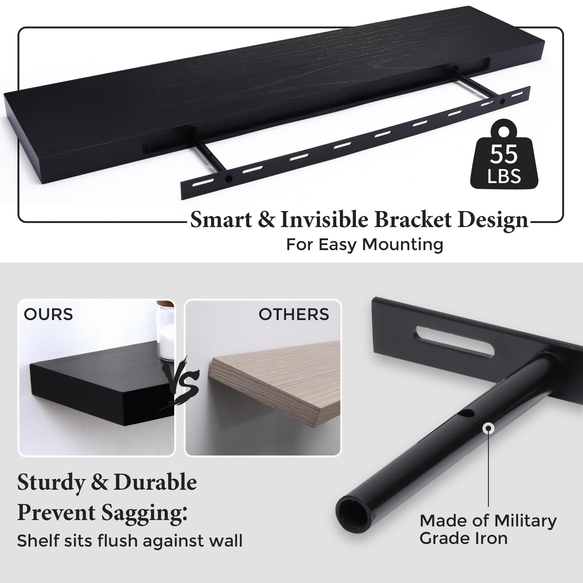 36inch Floating Shelves, 8 inch Deep Modern Solid Wood Wall Shelves for Storage, Wall Mounted Display Shelving,Black