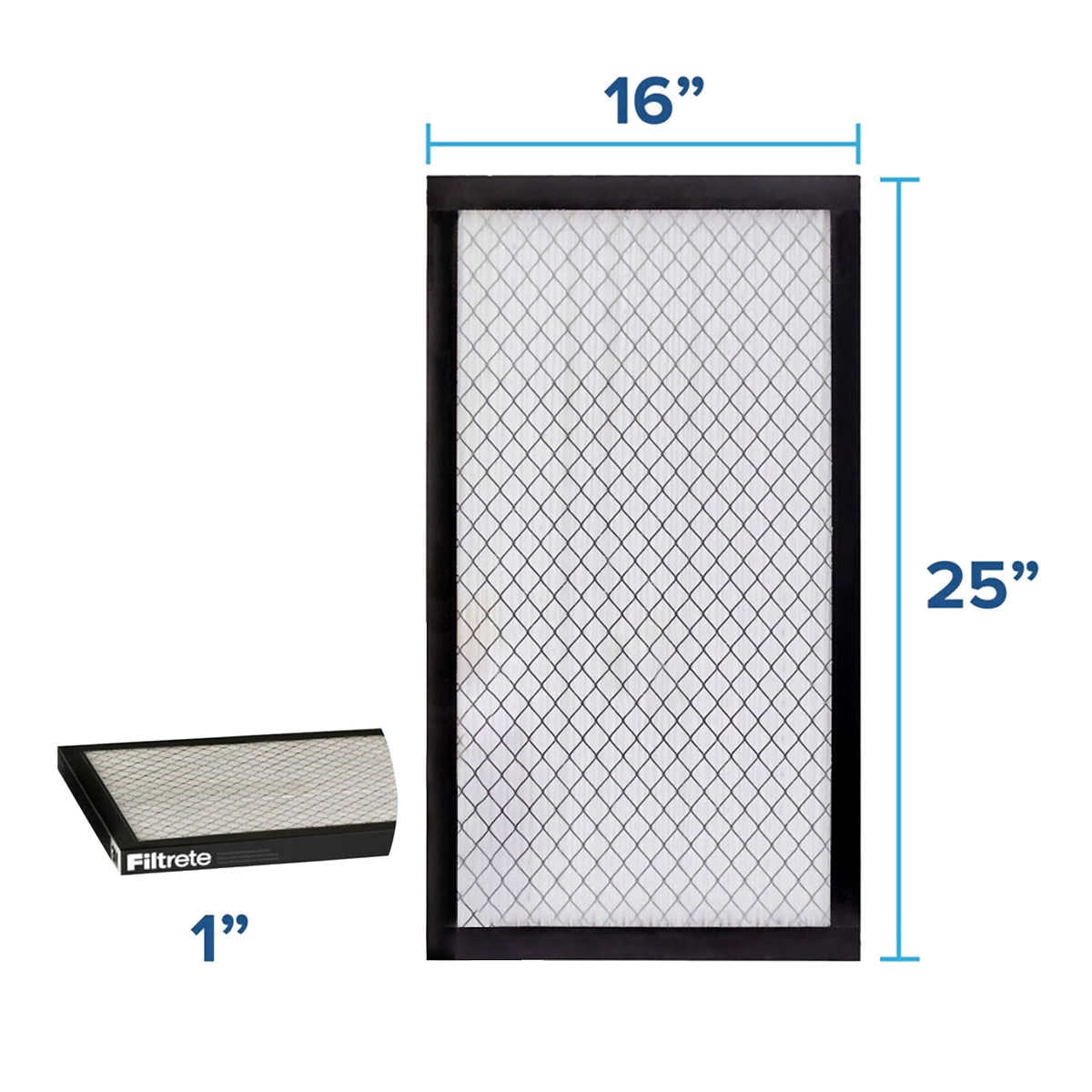 $67.51Various Sizes Available Captures Pollen, Smoke, Bacteria & Viruses Lasts up to 3 Months For Residential Use Only MPR 2500 MERV 14 The Filtrete Premium Allergen & Ultrafine Particles Filter is our best performing filter ever. It attracts and captures microscopic particles like nano-particles and bacteria and particles that can carry viruses and large particles like mold spores and pollen. Your home should be your sanctuary, starting with the air you breathe. Filtrete Premium Allergen & Ultrafine Particles Air Filters help capture unwanted particles from your household air, contributing to a cleaner, fresher home environment. By proactively capturing dust, bacteria, viruses and allergens, these high performance filters help improve your home’s air quality. Features: 1. The higher the MPR, the more microparticles–such as pollen, pet dander, smoke, bacteria and viruses–your filter will capture from the air passing through it 2. FOR OPTIMAL PERFORMANCE of your heating & cooling system or HVAC system, change your home air filter at least every 90 days for 1 in. filters 3 .A dirty filter will slow down air flow and make the system work harder to keep you warm or cool–wasting energy. Sign-up for a filter change reminder program ( that works for you! 4. OUTPERFORMS FIBERGLASS AND NON-ELECTROSTATIC 3-month pleated 1 inch home air filters for your furnace, air conditioner or HVAC system 5. DESIGNED WITH EXCLUSIVE Filtrete Brand 3-in-1 technology from 3M to trap unwanted air particles while letting cleaner air flow through 6. ATTRACTS AND CAPTURES microscopic particles such as smoke, cough and sneeze debris, bacteria and viruses–and large particles, including lint, household dust and pollen 7. 77% SMALL PARTICLE CAPTURE, like bacteria and particles that carry viruses ( % captured is based on ASHRAE 52.2 testing for 0.3 to 1 micron particles from the air passing through the filter, which relates to HVAC industry standard efficiency testing) 8. MPR 2500 has a rating of MERV 14 Includes: 4 Filters /Pack
