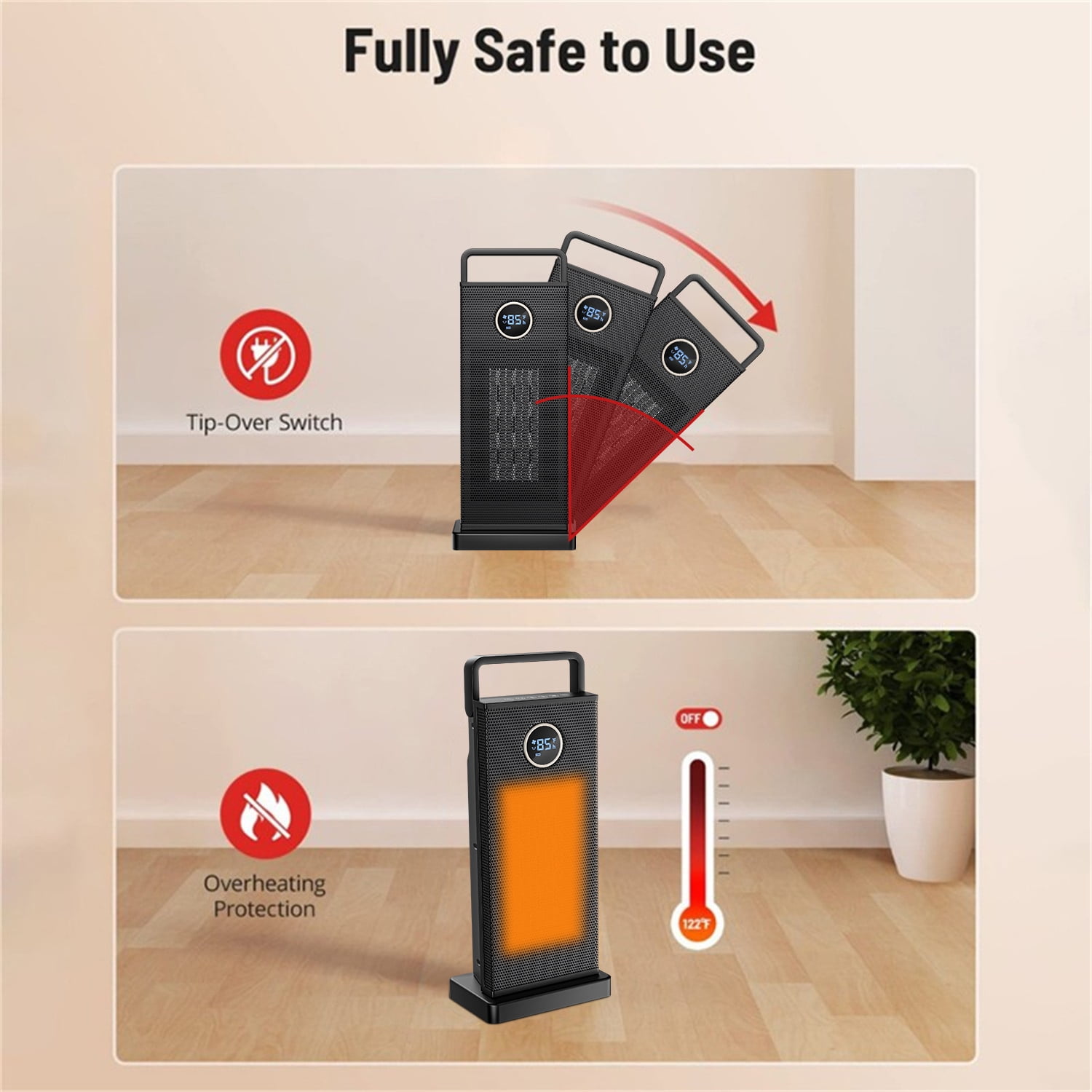 BLUELK Space Heater, Portable Electric Heater 2000W PTC with Thermostat, 3 Modes 70° Oscillating, 12h Timer, Safety & Quiet-Instant Heating for Indoor