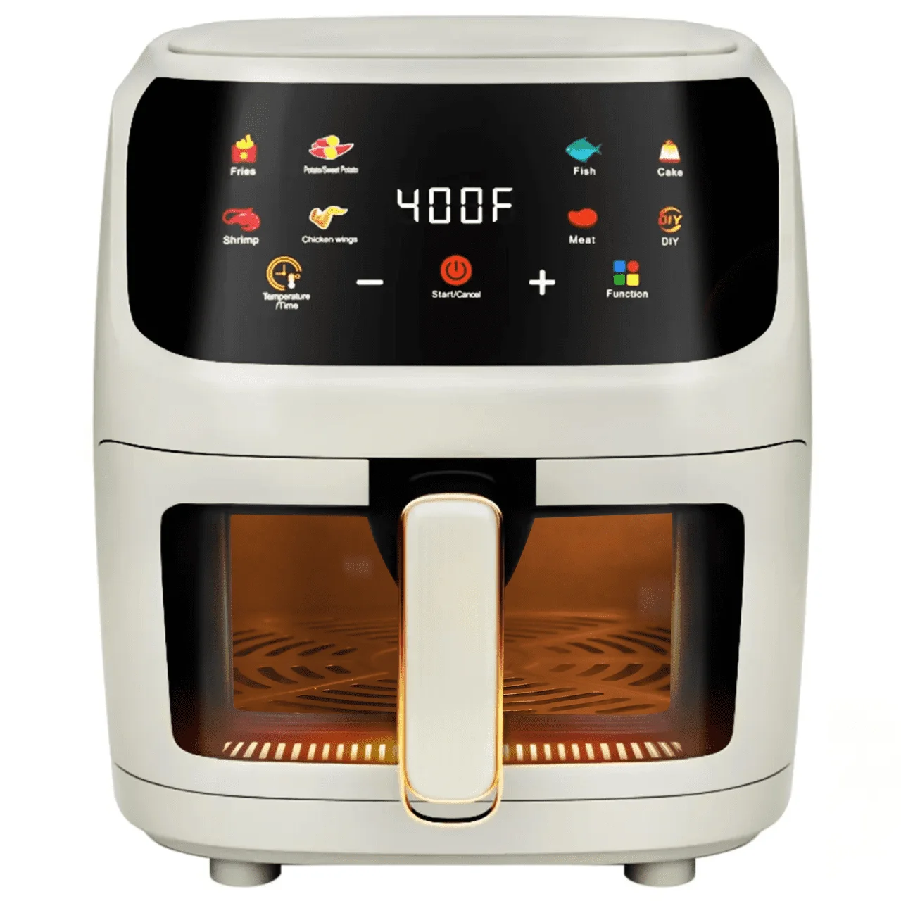 Bluebow Air Fryer Large 7.5QT, 8-in-1 Digital Touchscreen, Visible Cooking Window, 1700W, Cream White