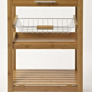 Boraam Aya 23″Wide Bamboo Storage Kitchen Cart with Stainless Steel Top – Natural Finish