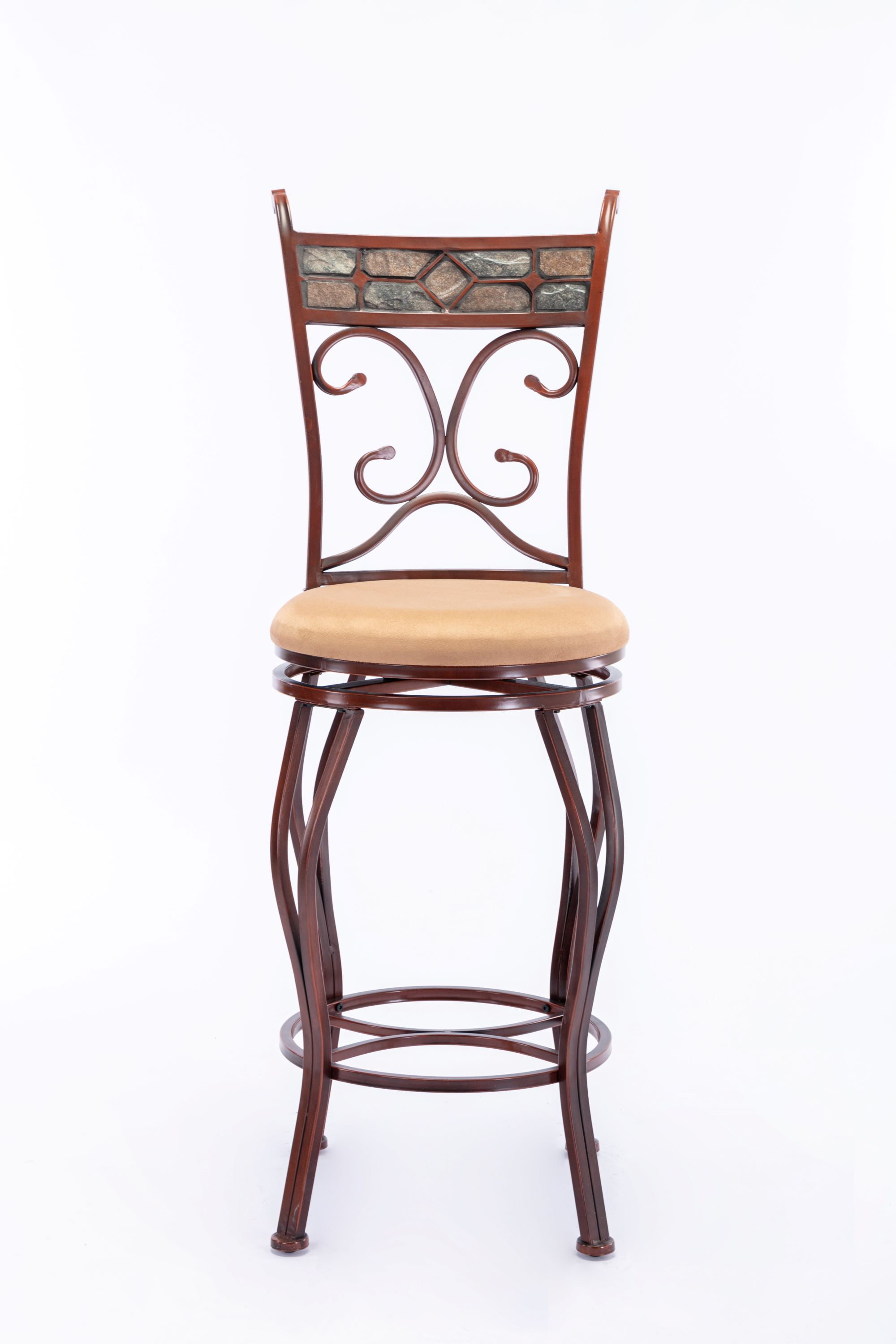 $68.21Original price was: $68.21.$61.00Current price is: $61.00.Beau Swivel Counter Stool – Brown Whether you’re looking for the finishing touch to your home bar or counter, or you’re hoping to create a custom pub set, the Beau Swivel Stool is raring to go. This metal swivel stool features decorative mosaic slate panels on the backrest, bringing it Mediterranean flair. The plump high-density foam seat cushion is covered with beige linen upholstery. Prop your feet on the durable footrest (which also doubles as support stretchers for extra stability). Pair this stool with the matching Beau Pub Table (sold separately) for a match made in heaven. Backrest height is 16″ Seat diameter is 16″ 360-degree steel ball-bearing swivel plate Full-ring footrest supplies strength and stability Mosaic slate panel accents on backrest Matching Beau Pub Table available sold separately