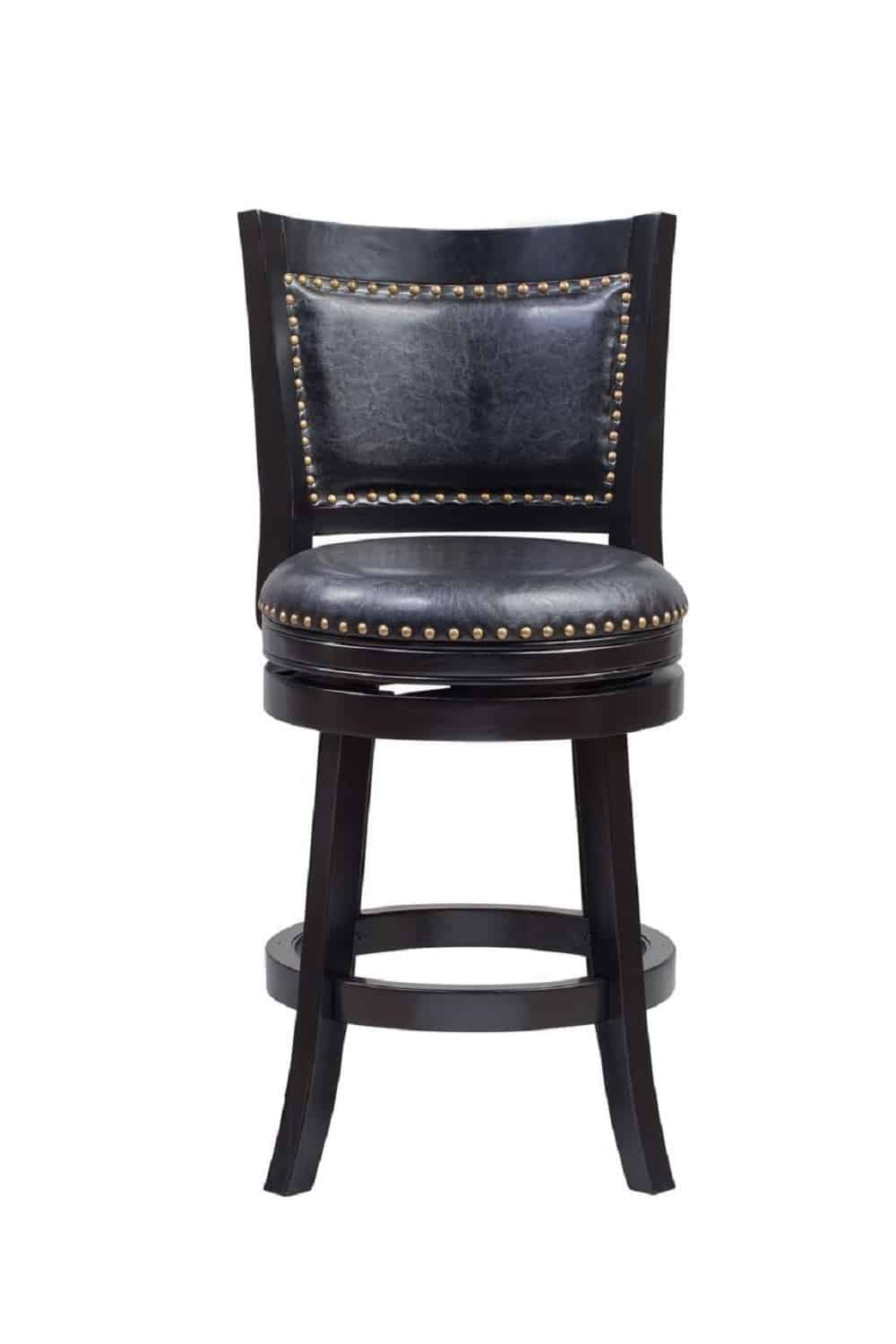 $107.49Elevate the look of your home with the Bristol 360-Degree Swivel Stool’s traditional style and classic comfort. Manufactured with precise attention to detail, the Bristol embodies comfort, durability, and style. In other words, it’s the complete package. It’s crafted from solid hardwood with a high-density foam seat and backrest cushion. Faux leather upholstery is accented by nailhead trim made from genuine brass. Each of the nailheads is applied individually by hand. On the base, flared legs and a stability stretcher offer enhanced durability and balance when you’re seated. The protective metal plate on the footrest guards against potential scuffs or scratches. The Bristol Swivel Stool is available in counter or bar height: simply choose your preference at checkout.
