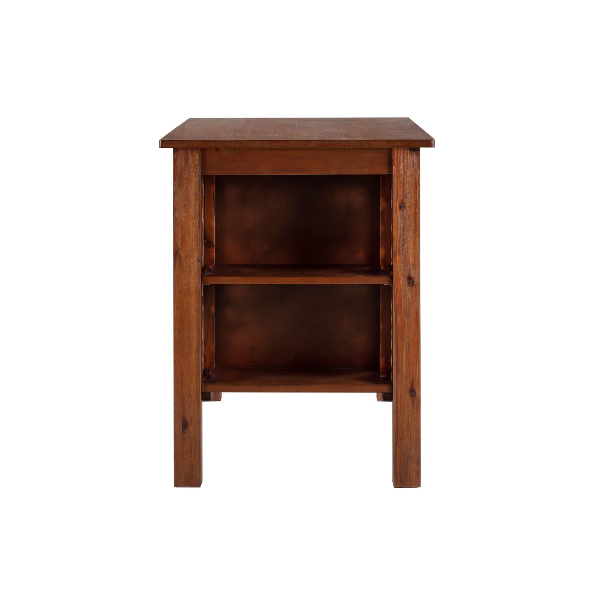 $127.28Versatility and rugged charm go hand-in-hand with our Brittany 60” rectangular dining room table with storage shelves. The Brittany table can also double as a desk. The acacia wood and metal dining table feature a multistep wire-brush finish which enhances the natural beauty of the wood even more. This multi-function dining table also features 2-tiered bookshelf surrounded by decorative metal accents to display cookbooks, decorative accessories and more. However, you choose to use this functional piece, make it yours by adding four of your favorite stools (like the Boraam Sonoma Saddle Stools – sold separately). The Brittany dining table comes in your choice of dining or bar height options. Both options are available in Chestnut Wire-Brush Finish.