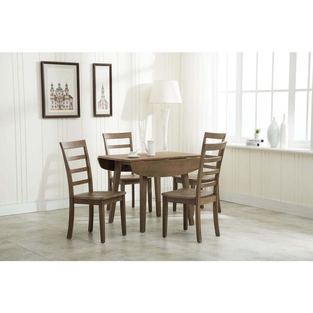 $360.32Useful in a breakfast nook, dining area, or mixed use living room, the Boulder 5-Piece Dining Set’s compact design fits pretty much anywhere. This set seats up to four guests with ease thanks to the square dining table and four ladderback chairs. With a 7-inch drop leaf on either end, the table’s width expands easily whenever you need a little extra elbow room. Made from environmentally friendly rubberwood and steel hardware. Features: Made with rubberwood and steel hardware Barnwood wire-brush brown finish 7.25-inch drop leaf on either end Mid-Century Style Table has 2 drop leafs All tools included for quick and easy assembly Specifications: Assembly Required: Yes Commercial/Residential: Residential use only Table Dimensions: With Leaf – 40.5” W x 40.5” D x 30” H Table Dimensions: without Leaf – 26” W x 26” D x 30” H Seat Height: 18″ Chair Dimensions: 18″w x 38″h x 20.5″d