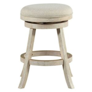 Boraam Fenton 24″ Backless Wood and Linen Swivel Counter Stool – Ivory Wire-Brush
