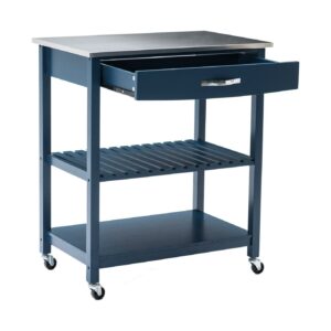 Boraam Holland Wood 36in. Kitchen Cart with Stainless Steel Top, Navy Blue Finish