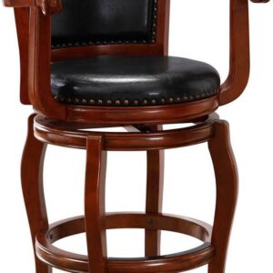 Boraam Jones 29in. High Back Swivel Wood Bar Stool with Arms – Black/Cherry Finish