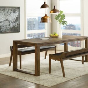 Boraam Rasmus Low Back Acacia Wood Dining Bench with Faux Leather Upholstery