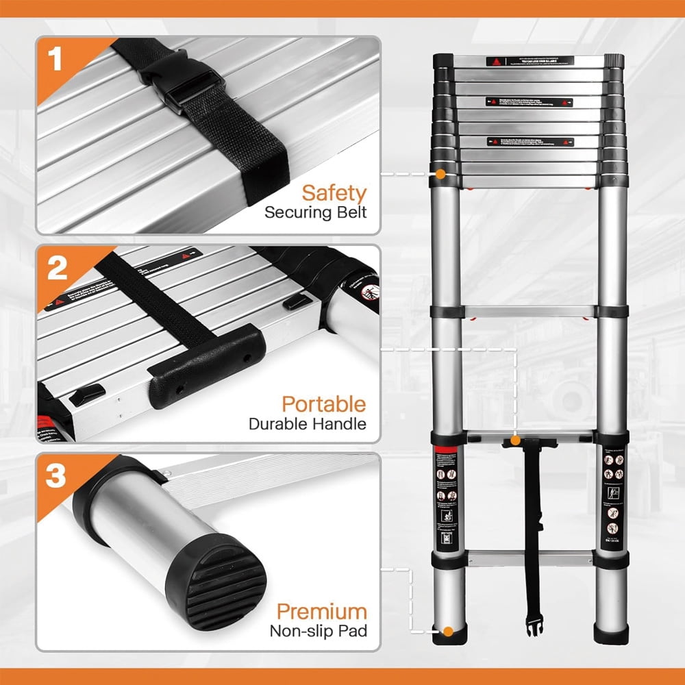 $54.171. Each section with BOWEITI special independent locking mechanism to fix and adjust the extension ladder. 2. Soft carrying handle keeps the ladder compacted while transporting and make it easier to carry and store. 3. Made of premium aluminum material which is resistant to wear and corrosion, rust, high and low temperatures and aging.