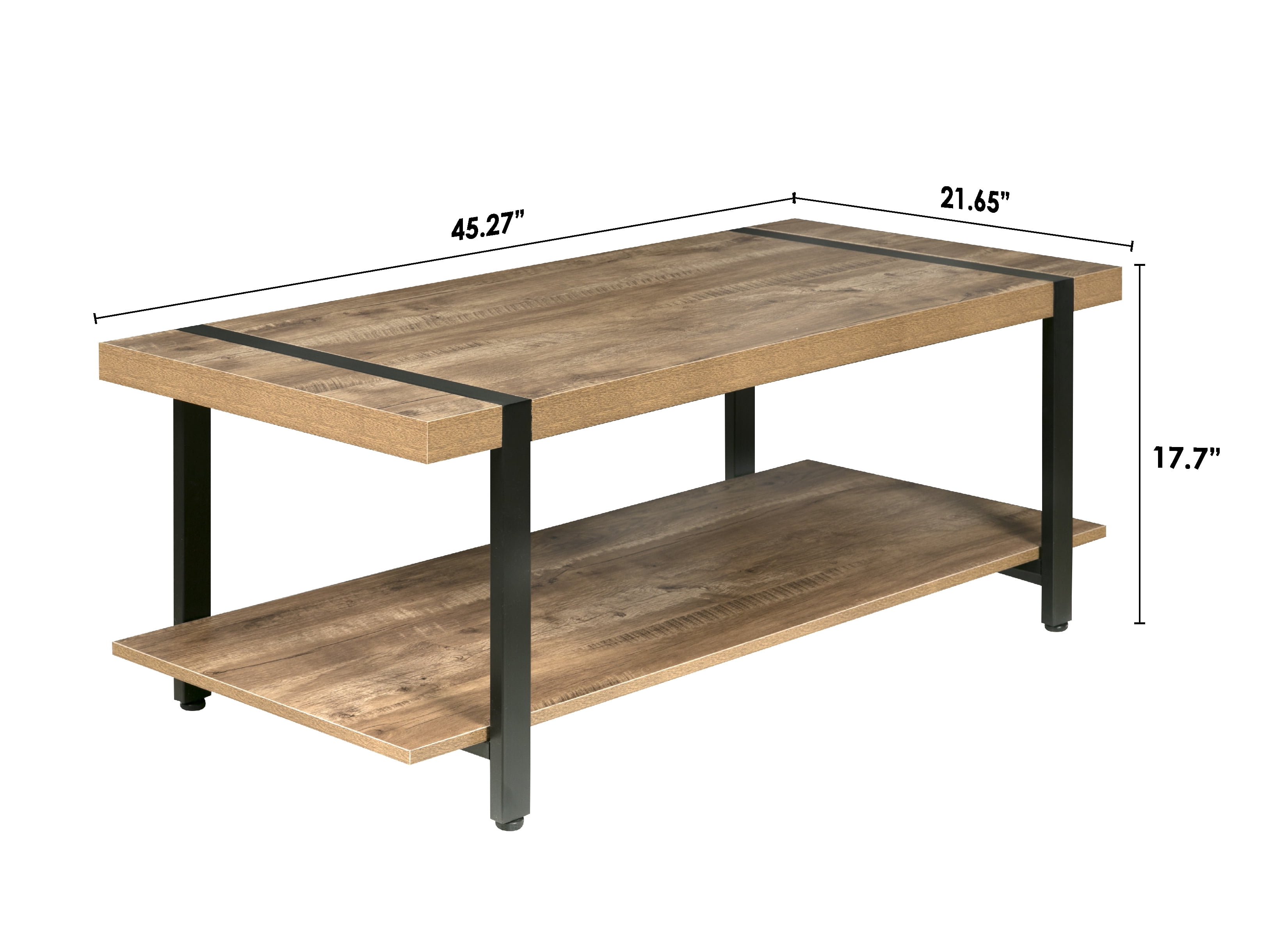 $118.68Enhance your living room with the industrial styling of this attractive coffee table from the Bourbon Foundry Collection. With a thick black steel frame and chunky wood-finished tabletop, this table offers the rustic look of work done by blacksmiths of days past. The wide bottom shelf offers plenty of storage space for books, games, or knickknacks.