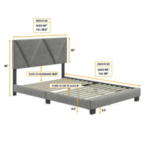 Boyd Sleep Vector Gray Velvet Queen Size Upholstered Platform Bed Frame with Adjustable Headboard