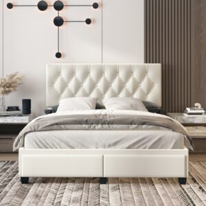 Boyd Sleep Verona Faux Leather Upholstered Tufted Platform Storage Bed Frame, Queen, White