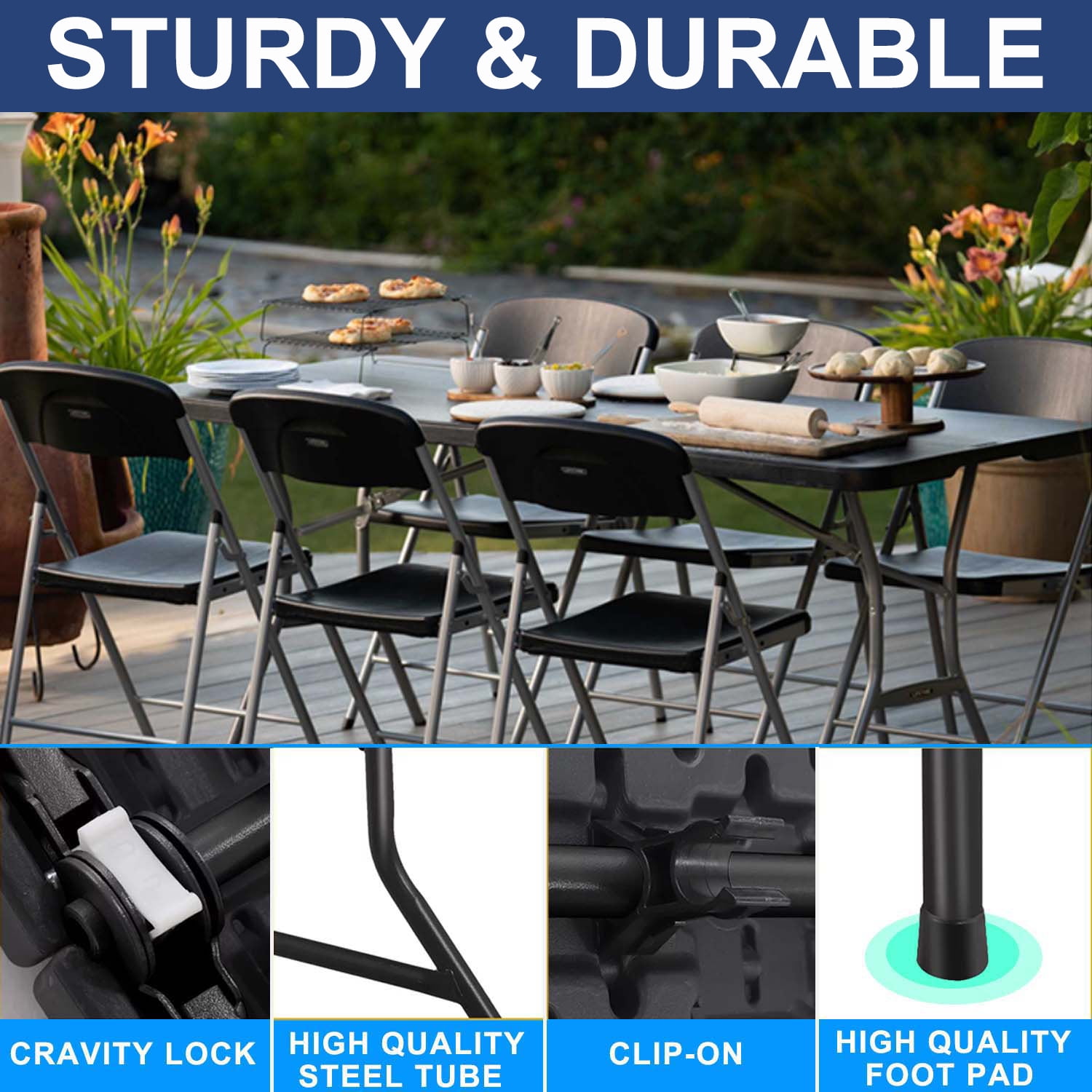 6 ft Fold-in-Half Folding Table, Indoor/Outdoor Essential, Black