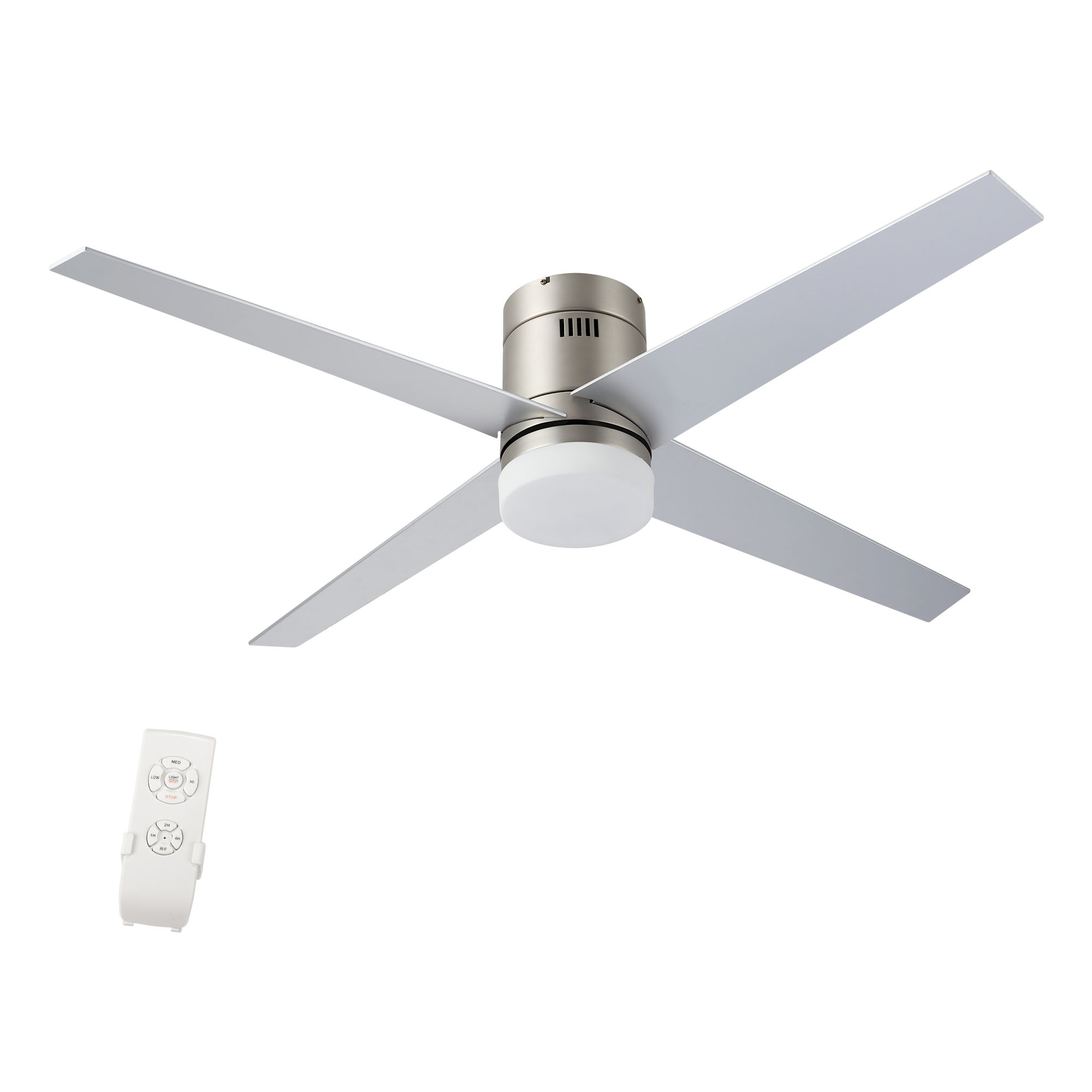 52″ Modern Ceiling Fan with LED Lights and Remote, Indoor Low Profile Flush Mount Ceiling Fans for Bedroom, Living Room, Brushed Nickel Finish and 4 Reversible Plywood Blades in Cherry & Silver